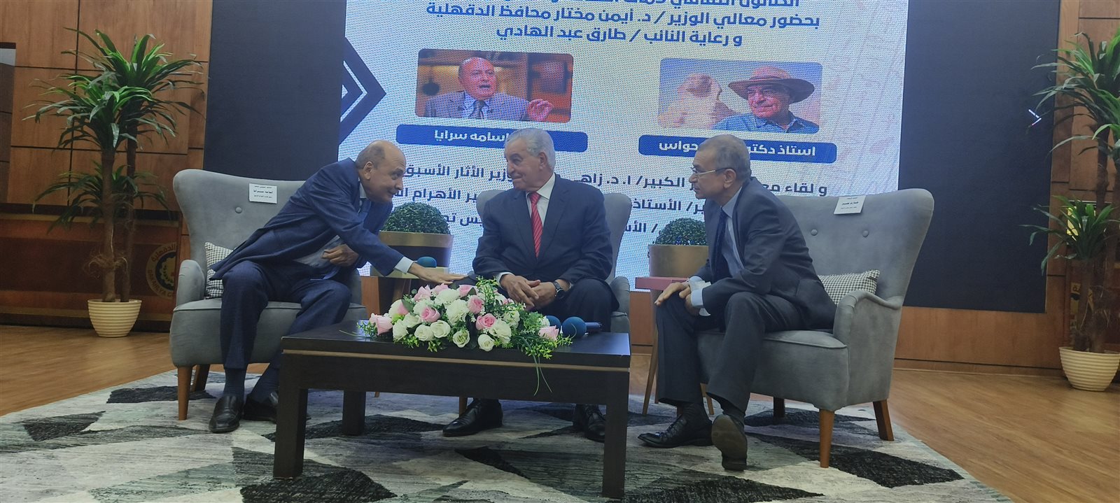 شهد الدكتور أيمن مختار، محافظ الدقهلية، مراسم افتتاح الصالون الثقافي بحضور الدكتور زاهي حواس والكاتب الصحفي أسامة سرايا.