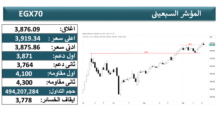 وأغلق مؤشر الشركات الصغيرة والمتوسطة بالجلسة الأخيرة على وتيرة إيجابية عند المستوى 3876.09 حيث شهد المؤشر ارتدادا طفيفا ليغلق أدنى مستوى المقاومة الثانوي الذي يكمن عند 4100 وهو المستوى الذي يحتاج المؤشر إلى اختراقه المؤكد حيث يعيد النظرة الإيجابية من جديد للمؤشر.
