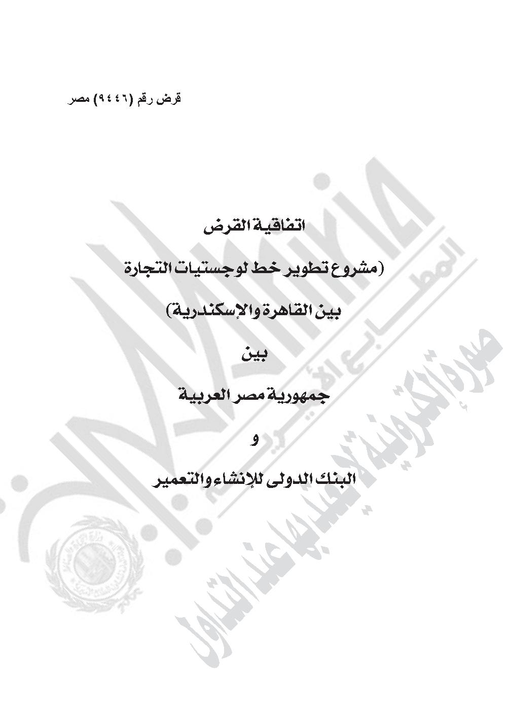 ونص القرار الجمهوري في مادته الأولى على الموافقة على اتفاقية القرض (مشروع تطوير خط لوجستيات التجارة بين القاهرة والإسكندرية) بين جمهورية مصر العربية والبنك الدولي للإنشاء والتعمير بمبلغ (400) مليون دولار أمريكي. وذلك مع التحفظ بشرط التصديق. صدر برئاسة الجمهورية فى 11 رمضان سنة 1444 هجرية.