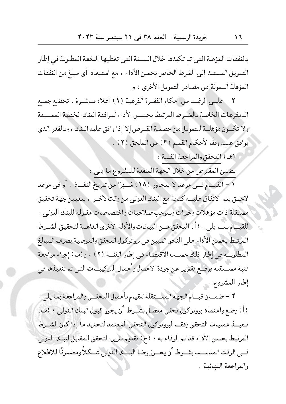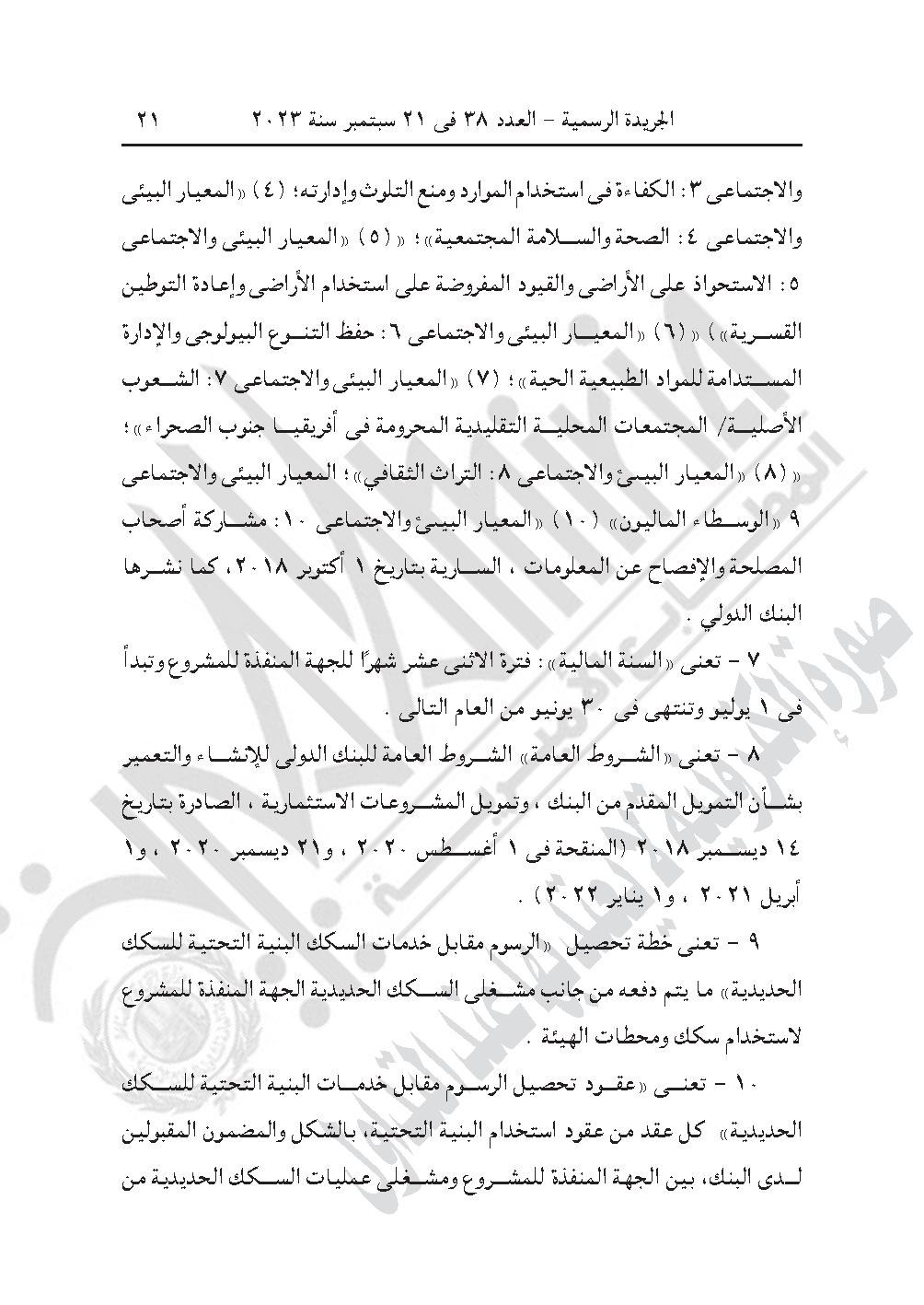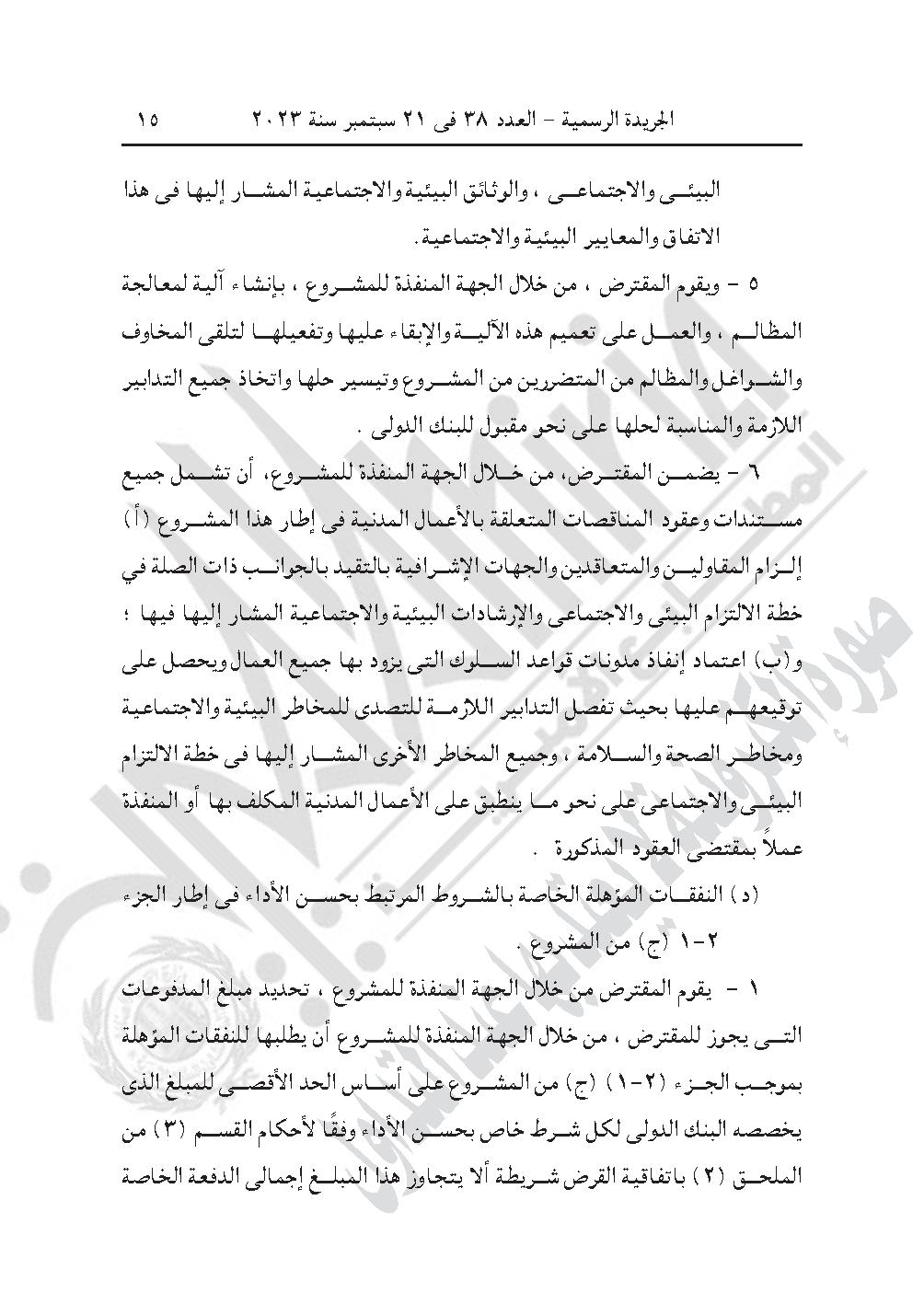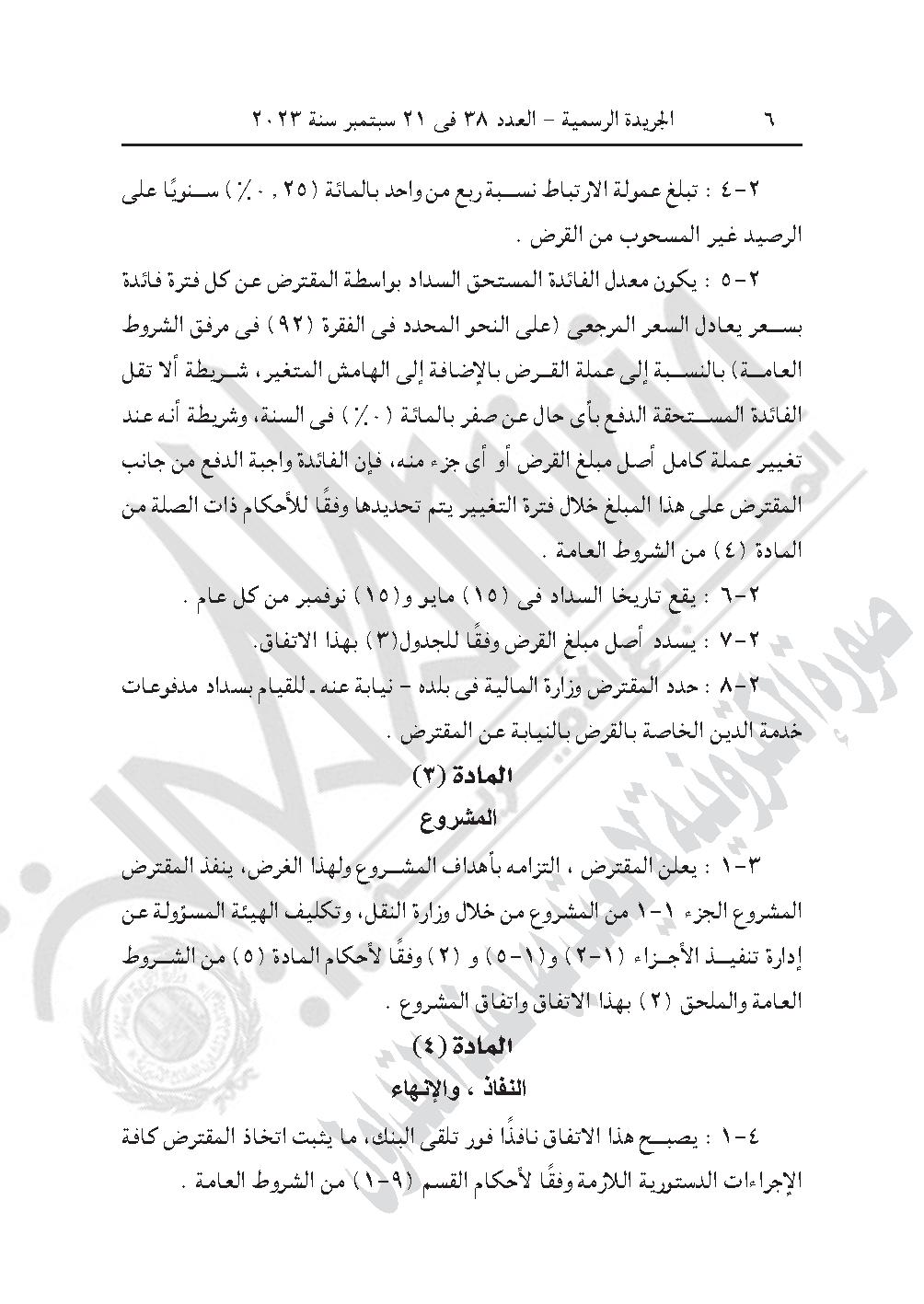 نشرت الجريدة الرسمية في عددها رقم 38، الصادر في 21 سبتمبر 2023، قرارا جمهوريا جديدا للرئيس عبد الفتاح السيسي رقم 129 لسنة 2023، بشأن الموافقة على اتفاقية القرض (مشروع تطوير خط لوجستيات التجارة بين القاهرة والإسكندرية) بين جمهورية مصر العربية والبنك الدولي للإنشاء والتعمير بمبلغ (400) مليون دولار أمريكي.