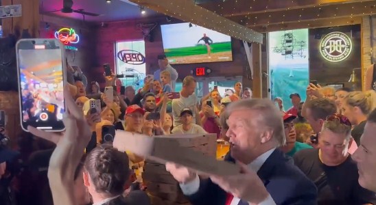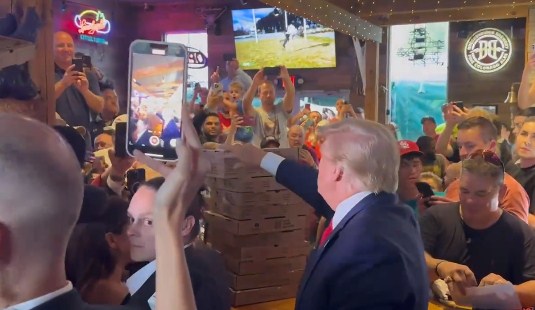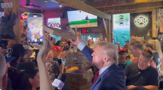ترامب يبدأ جولته الانتخابية في حانة ويوزع البيتزا على الحاضرين (فيديو)
