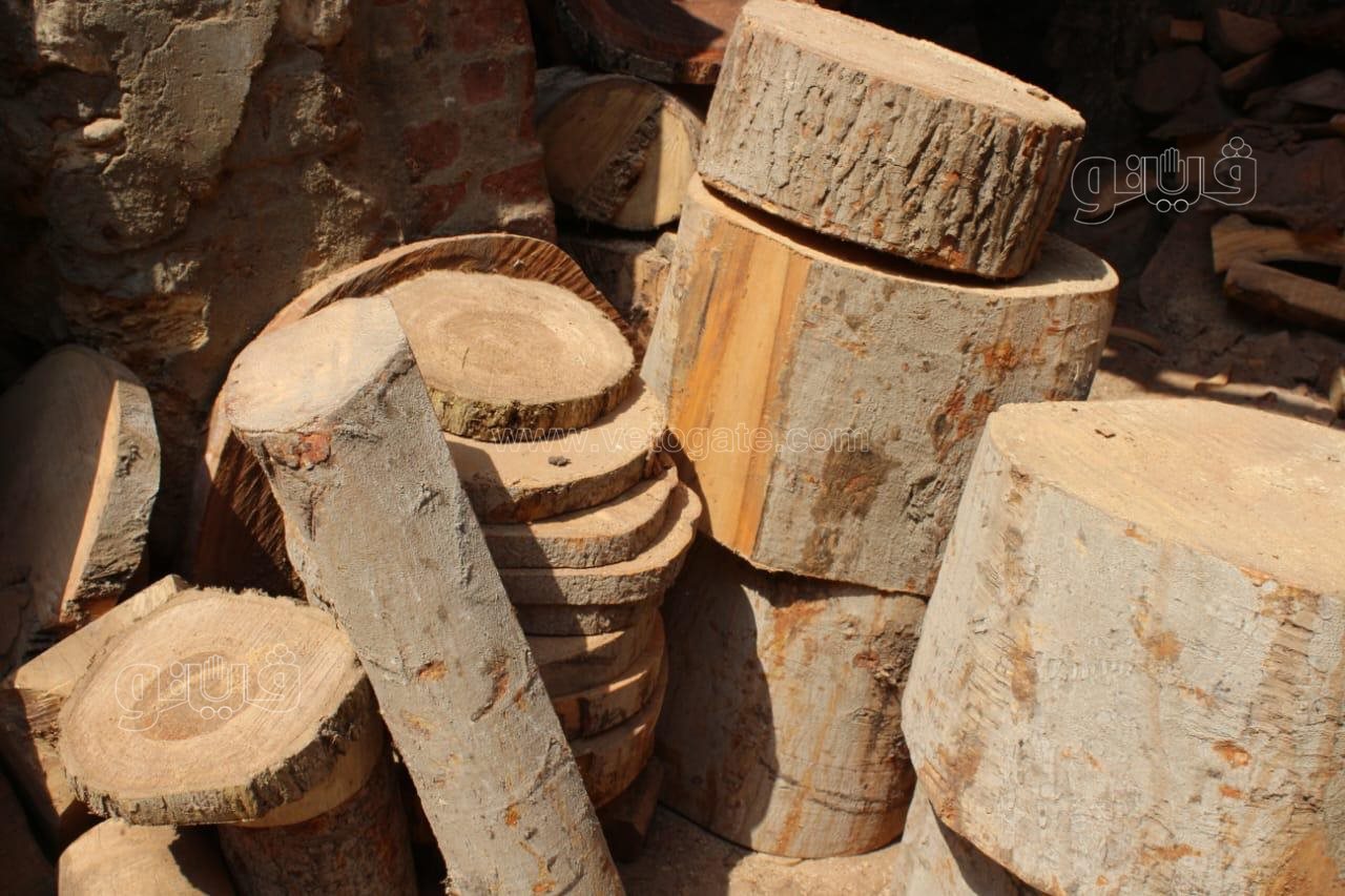 وعن أنواع الخشب المستخدمة في التصنيع قال: "في أكتر من نوع فمثلًا في خشب اللبخ والسرسوع والمانجا والتوت والكافور".