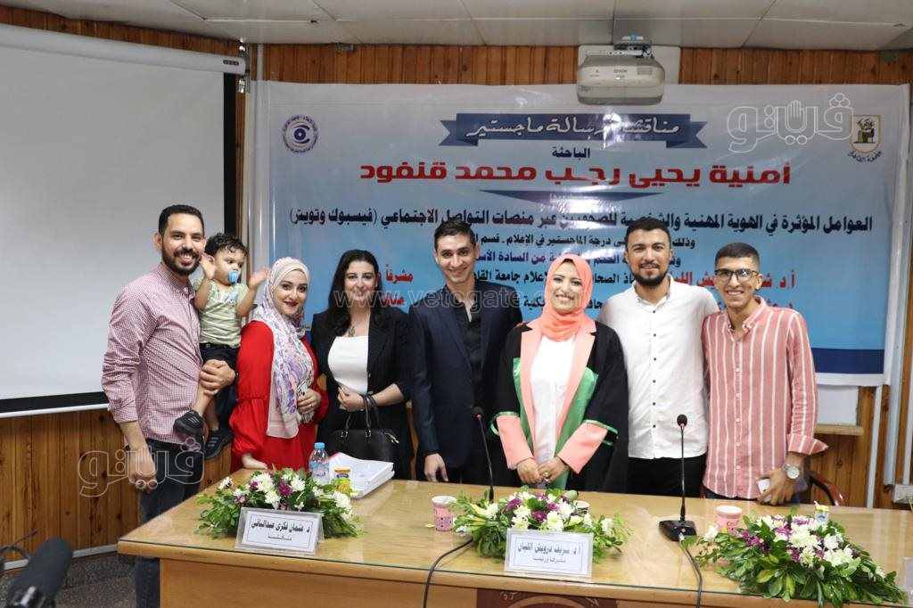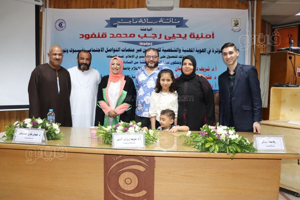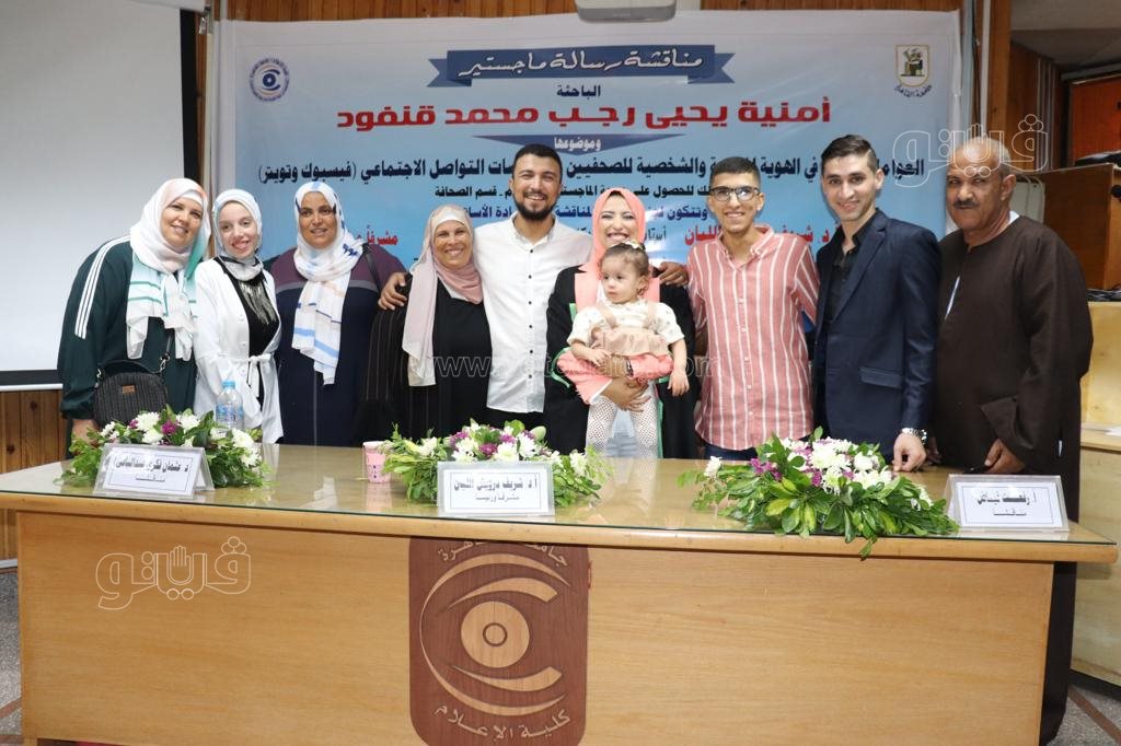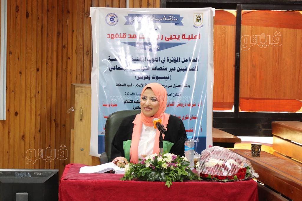 ناقشت كلية الإعلام بجامعة القاهرة، رسالة ماجستير للباحثة أمنية رجب قنفود المعيدة بقسم الصحافة بكلية الإعلام جامعة القاهرة، بعنوان "العوامل المؤثرة في الهوية المهنية والشخصية للصحفيين عبر منصات التواصل الاجتماعي (فيسبوك وتويتر).. دراسة ميدانية"، تحت إشراف الدكتور شريف درويش اللبان رئيس قسم الصحافة بكلية الإعلام جامعة القاهرة، وتم منح الباحثة درجة الماجستير بتقدير امتياز.