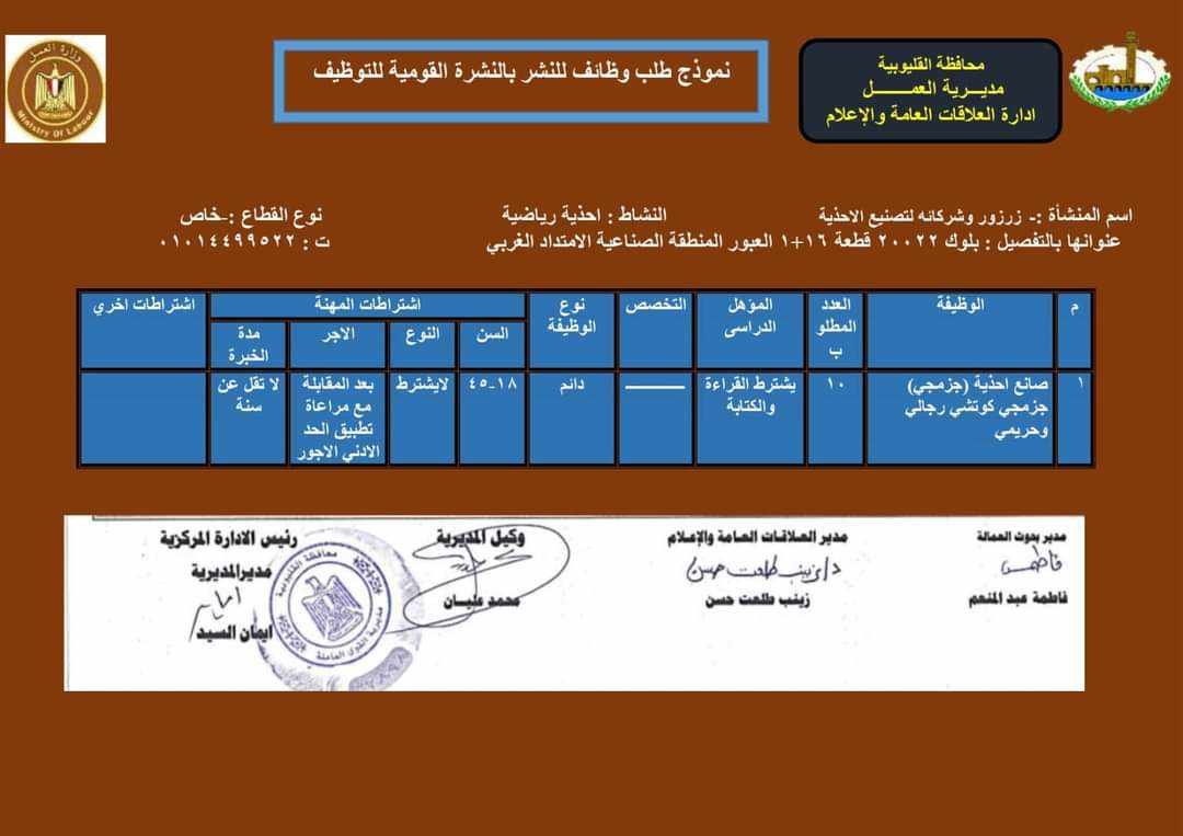 مديرية العمل بالقليوبية: توفير 533 فرصة عمل في 6 شركات