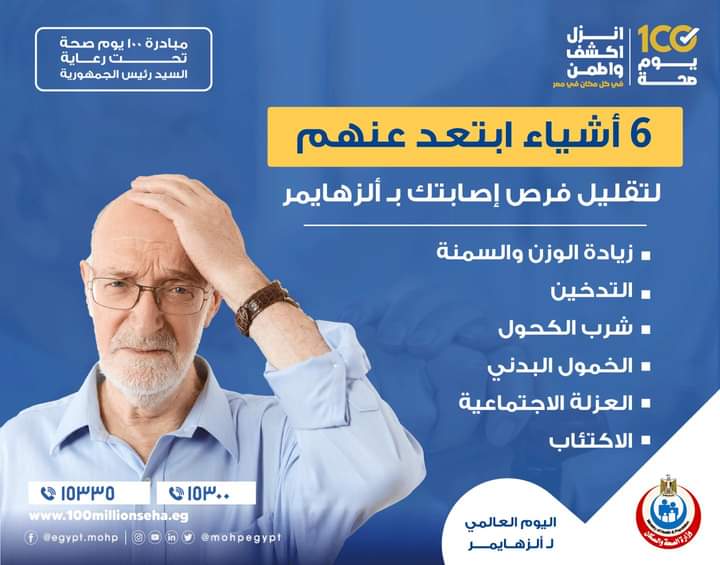 وكشفت وزارة الصحة عن وجود عوامل تزيد من فرص الإصابة بمرض الزهايمر منها: