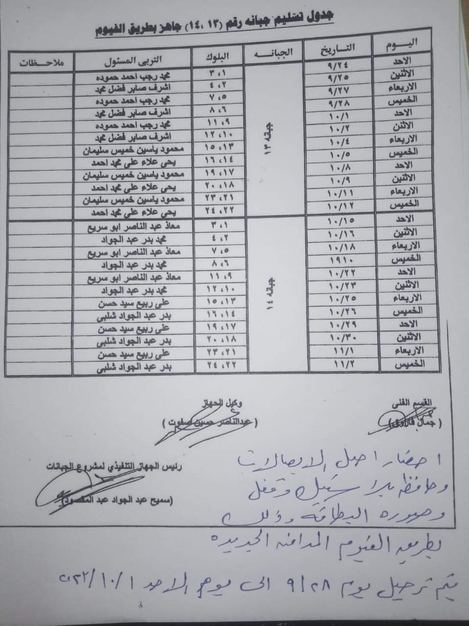 أعلنت محافظة الجيزة مواعيد تسليم المواطنين الحاجزين للمدافن الجاهزة بطريق الفيوم قطاع ( ب ) بجبانة" ١٣ " وجبانة " ١٤ " طبقا للمواعيد المحددة بالجدول الذي سنقوم بنشره والمقرر أن تبدأ الأحد المقبل وتنتهي في 2 نوفمبر المقبل.