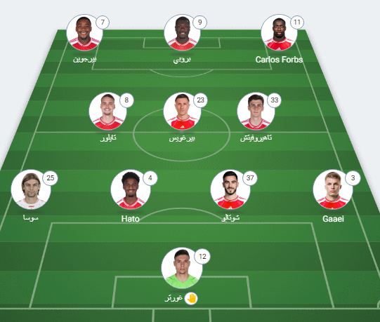 خط الوسط: تاهيروفيتش، بيرجويس، تايلور.