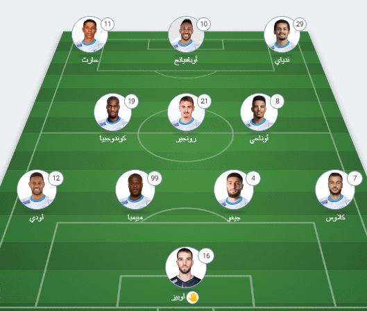 خط الهجوم: ندياي، أوباميانج، حارث.