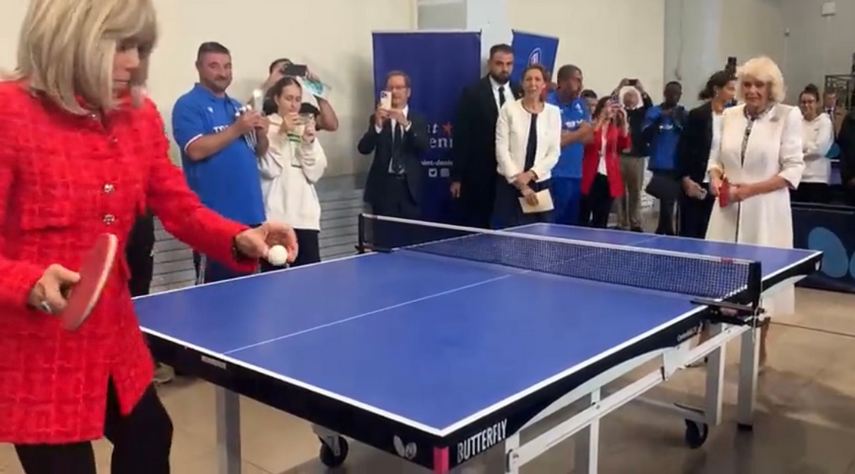 تواجهت الملكة كاميلا، زوجة ملك بريطانيا تشارلز الثالث، وزوجة الرئيس الفرنسي بريجيت ماكرون، في مباراة تنس الطاولة (بينج بونج) بالعاصمة باريس.