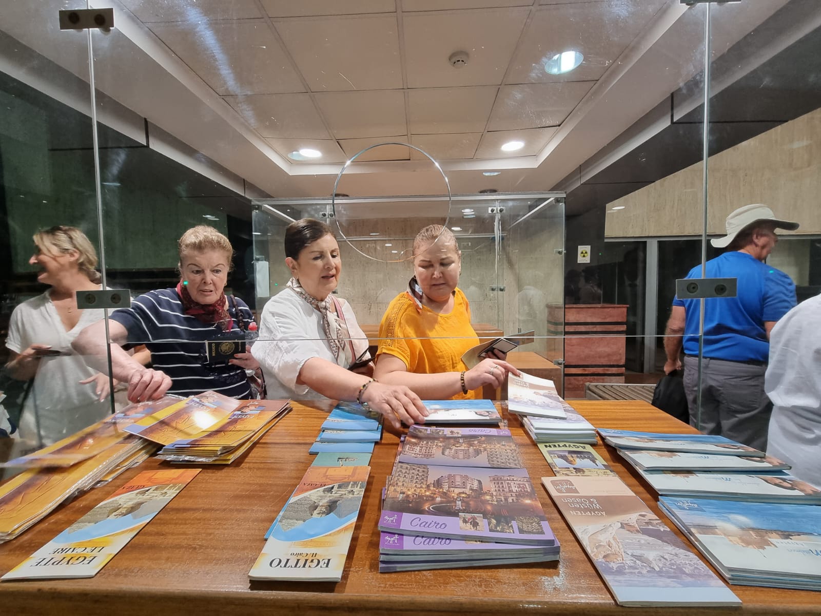 واصلت مدير مكتب الهيئة بالإسكندرية، أنه تم استقبال الفوج السياحي من قبل أخصائيي السياحة بالهيئة، بالترحاب الشديد بمظهر يليق بعروس البحر المتوسط وتوزيع مطبوعات الهيئة لمحافظة الإسكندرية ومحافظات مصر المختلفة للتعرف على أهم المعالم السياحية المصرية وتاريخها العريق، والتواصل معهم للرد على جميع استفساراتهم وتقديم كافة التسهيلات المتاحة للسائحين منذ وصول الباخرة، لبدء رحلتهم في سلام وأمان على أرض مصر.