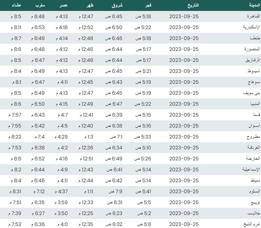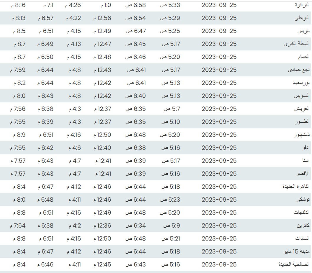 مواقيت الصلاة اليوم بتوقيت القاهرة
