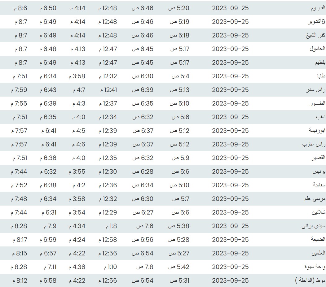 مواقيت الصلاة اليوم بتوقيت الإسكندرية