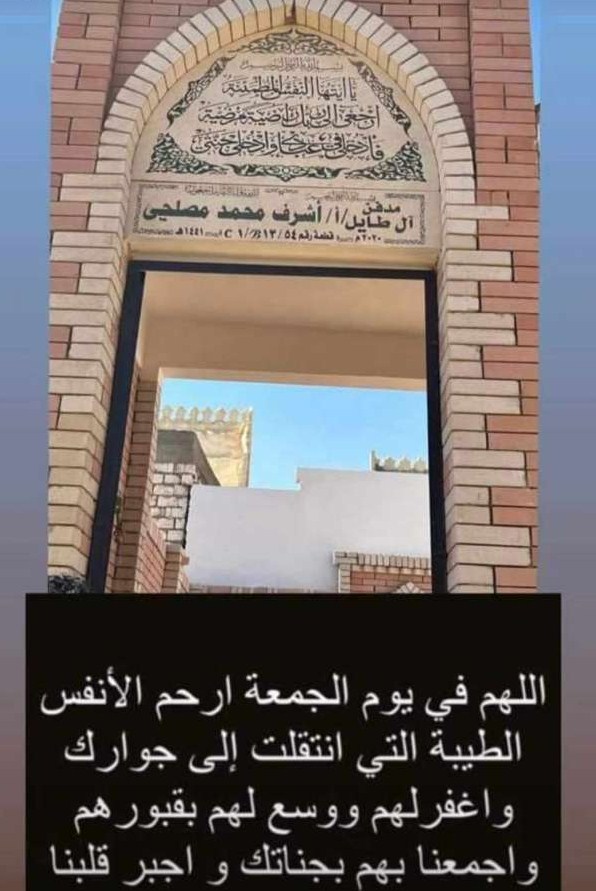و نشرت “منال” صورة من أمام قبر زوجها وعلق على الصورة قائلة:" اللهم في يوم الجمعة ارحم الأنفس الطيبة التي انتقلت إلى جوارك، واغفر لهم ووسع لهم بقلوبهم واجمعنا بهم بجناتك واجبر قلبنا بعدهم".
