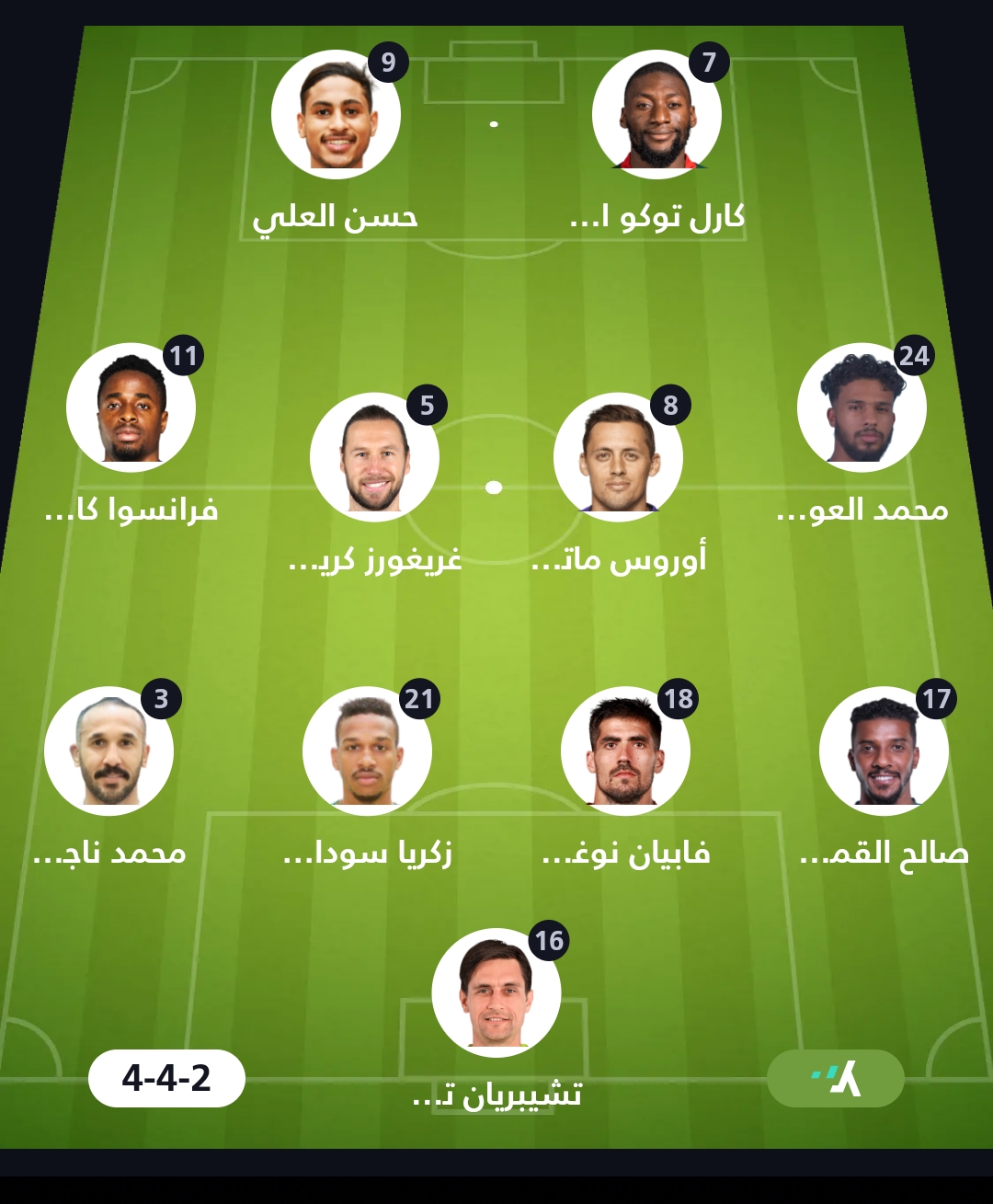 خط الدفاع: صالح القميري، فابيانو، زكريا سوداني، محمد ناجي.