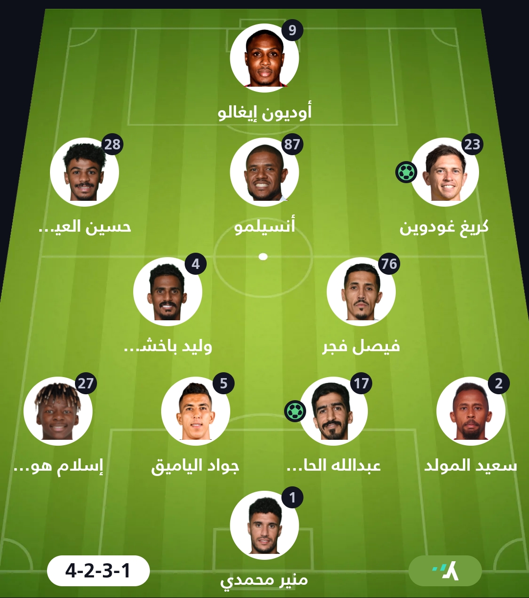 خط الدفاع: سعيد المولد، عبدالله الحارثي، جواد الياميق، اسلام هوساوي