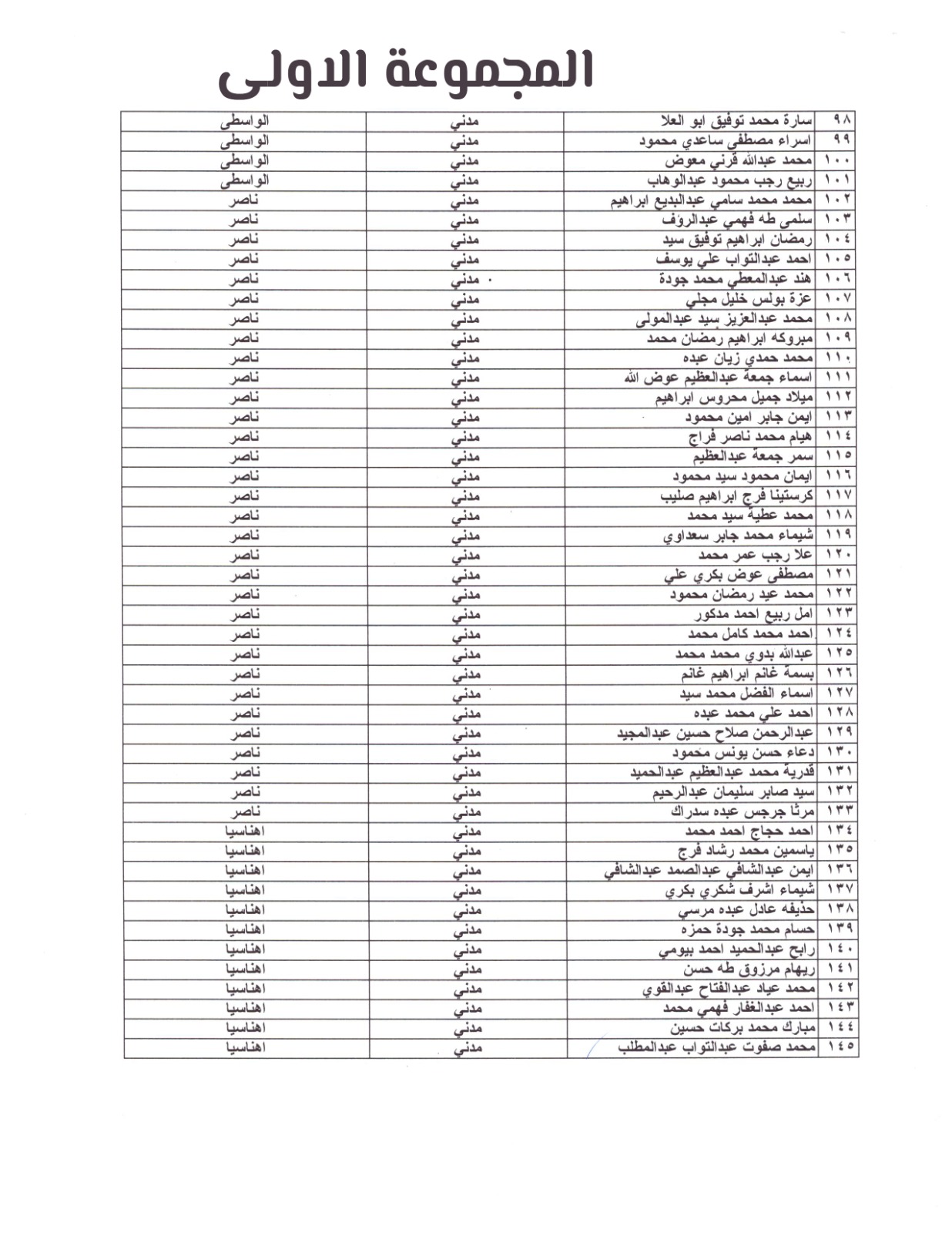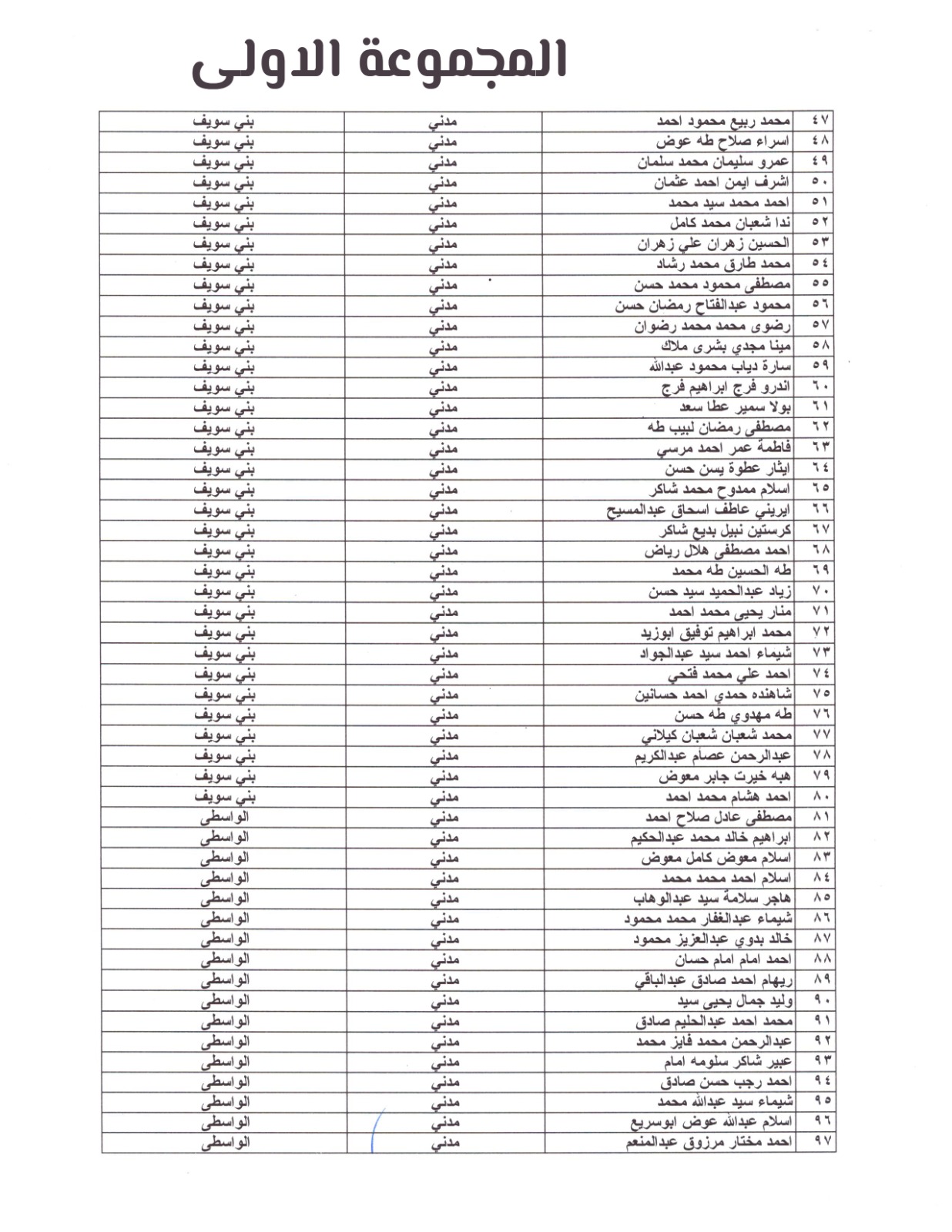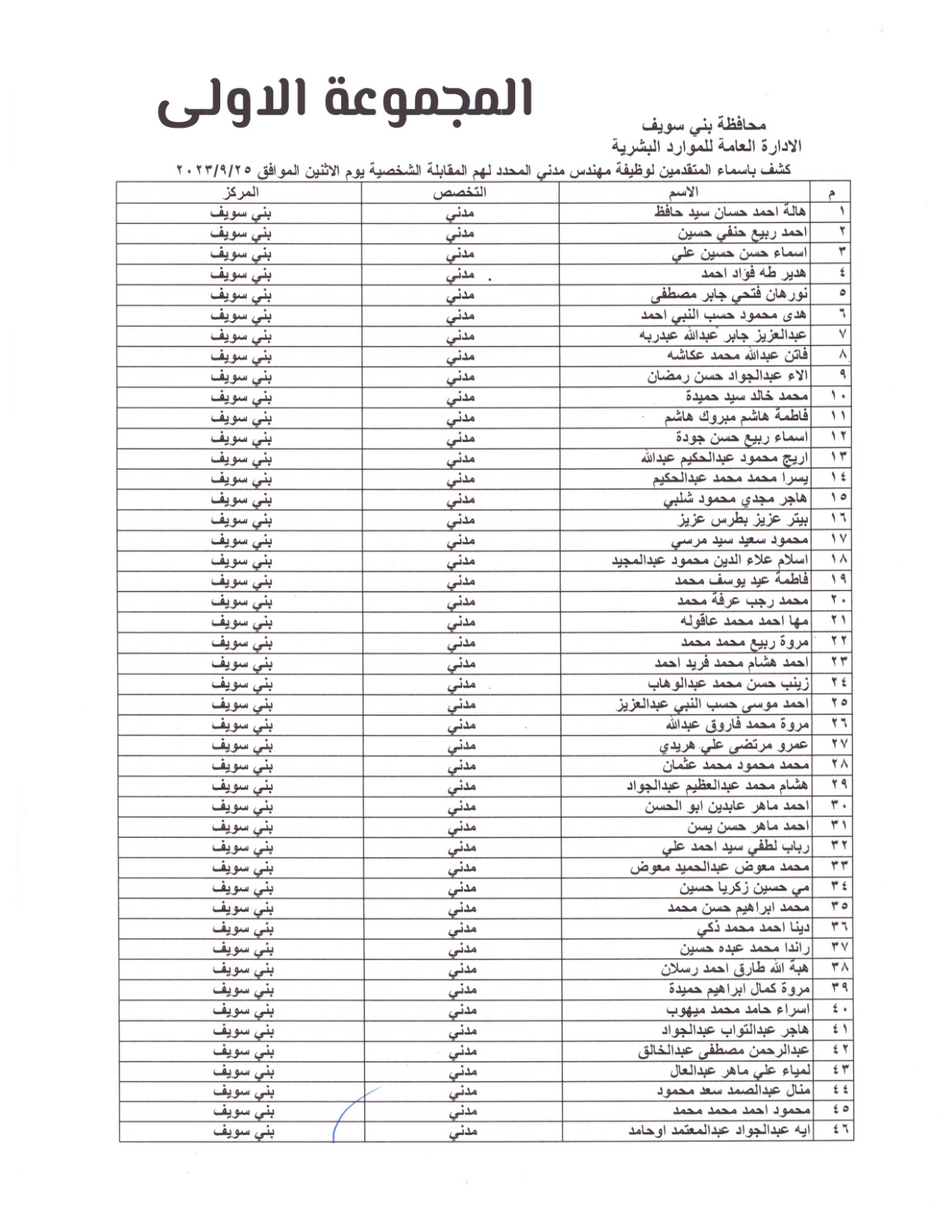 المجموعة الاولى لاسماء المهندسون المرشحون للإختبارات ببني سويف