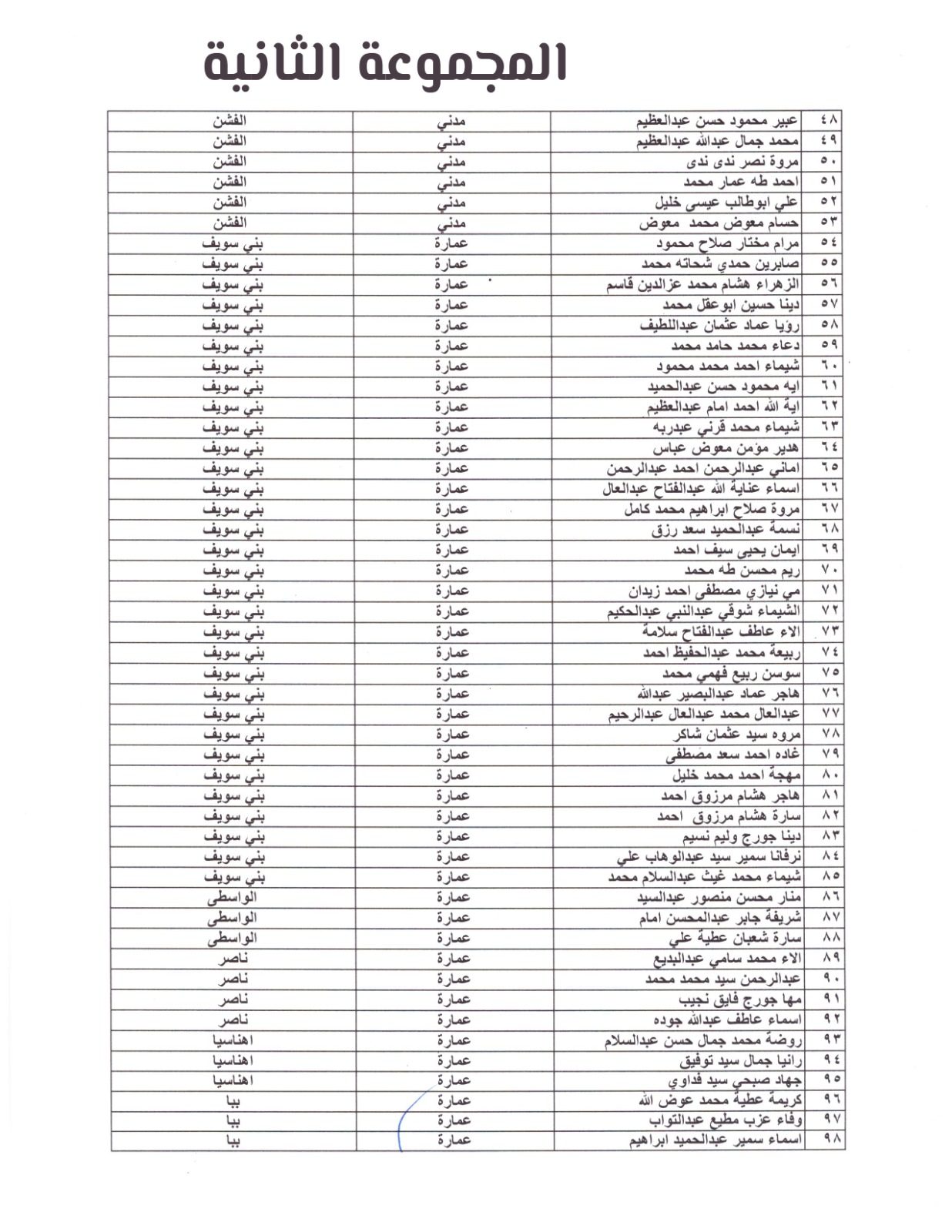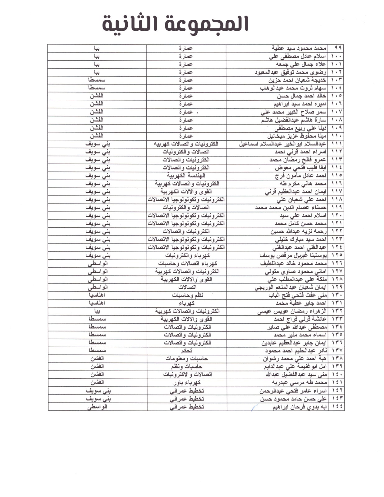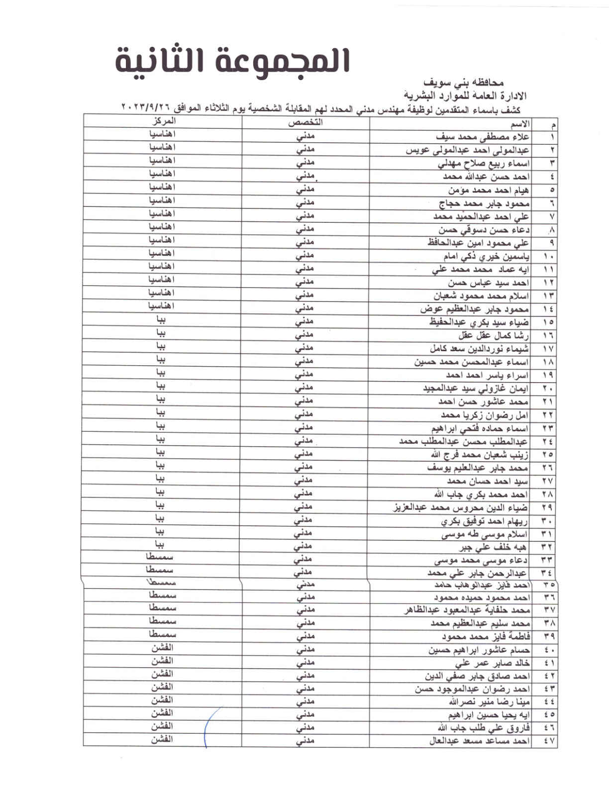المجموعة الثانية لاسماء المهندسون المرشحون للإختبارات ببني سويف
