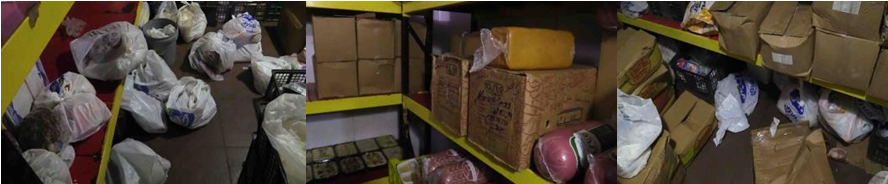 وفى محافظة القاهرة، ضبط 3 محلات جزارة ومخزنين بدون ترخيص بدائرة قسم شرطة المقطم ضُبط بداخلهم3,120 طن مواد غذائية بدون بيانات ومجهولة المصدر بها تغير بالخواص الطبيعية.