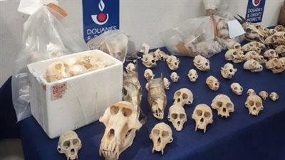 وبحسب «فرانس برس»، قالت الجمارك فى مطار شارل ديجول في فرنسا، إنها اعترضت 392 جمجمة قرد و326 جمجمة لحيوانات أخرى من أمتعة المهربين على مدى سبعة أشهر العام الماضى