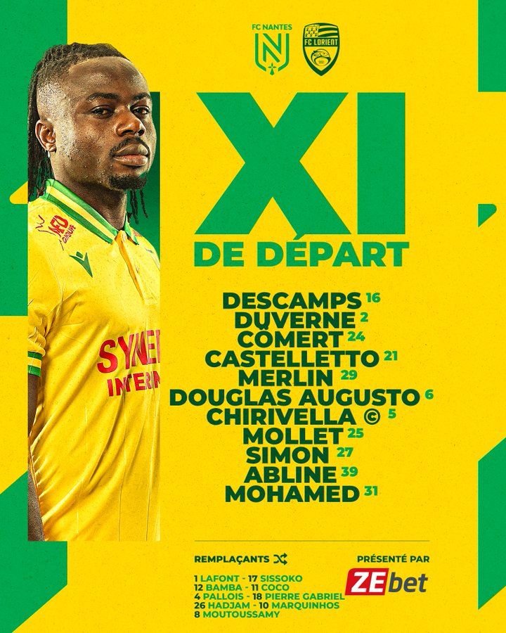 وتواجد مصطفى محمد مهاجم منتخب مصر في التشكيل الأساسي لمواجهة لفريقه نانت لوريان في الدوري الفرنسي لكرة القدم.