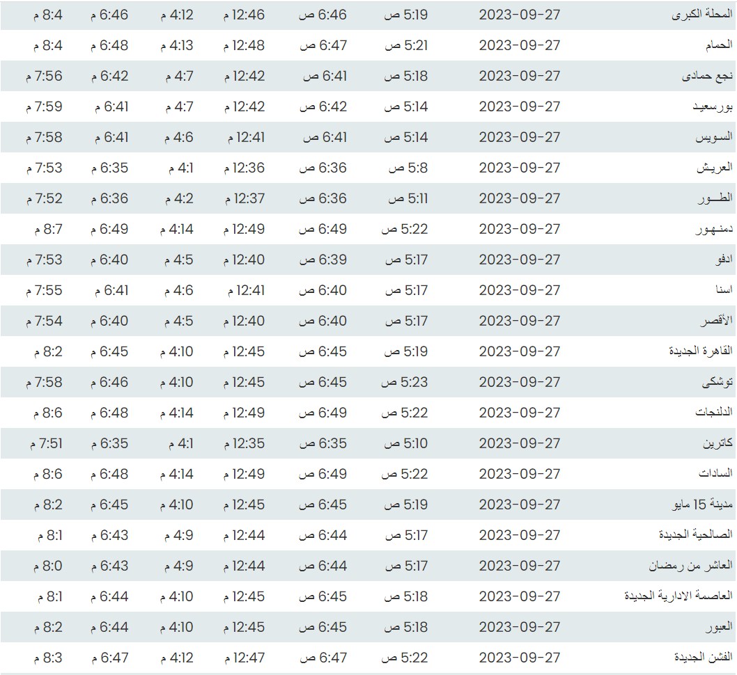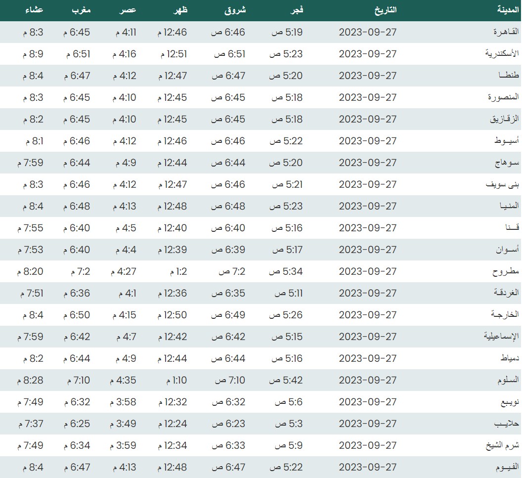 مواقيت الصلاة اليوم بتوقيت القاهرة