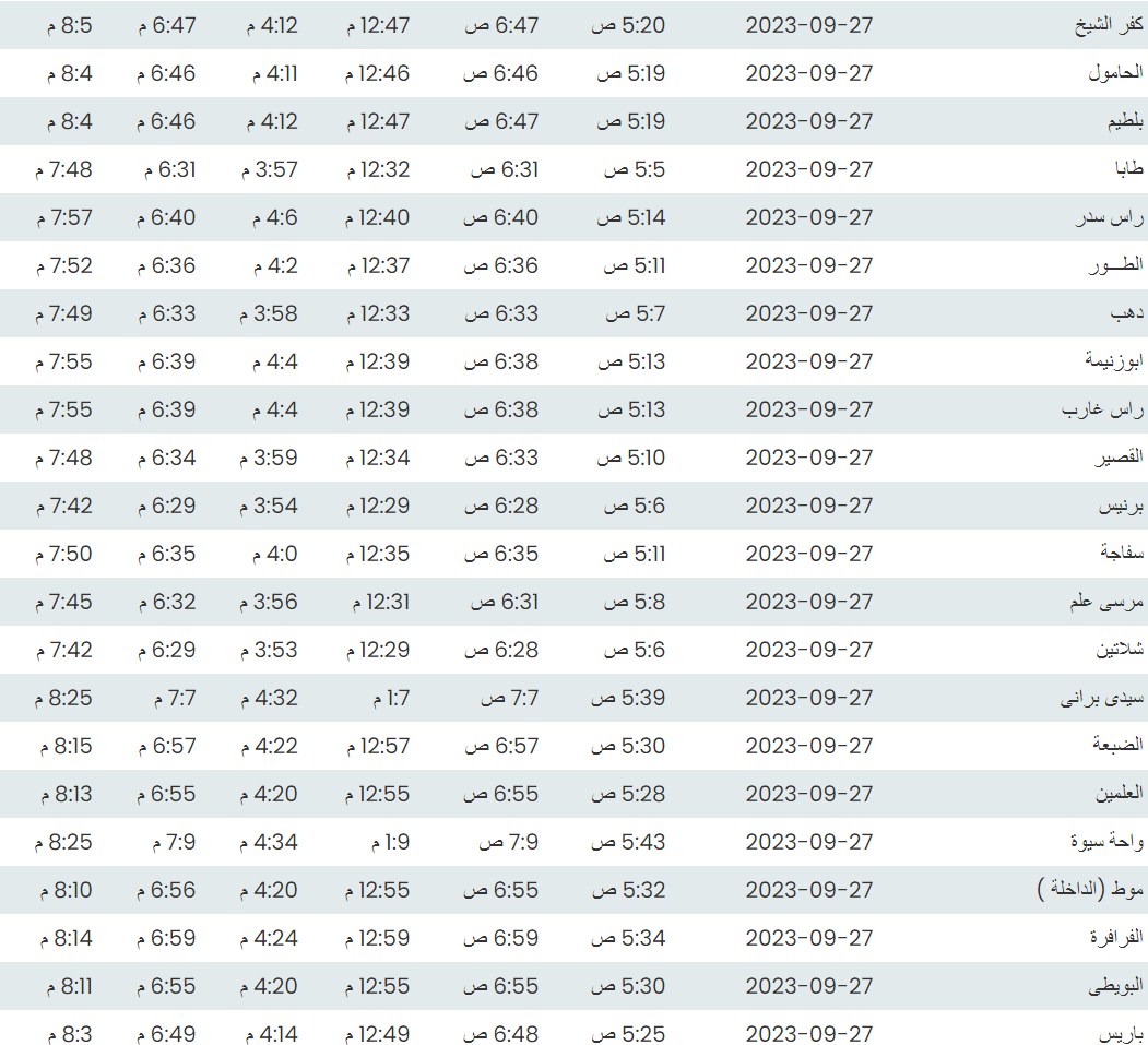 مواقيت الصلاة اليوم بتوقيت الإسكندرية