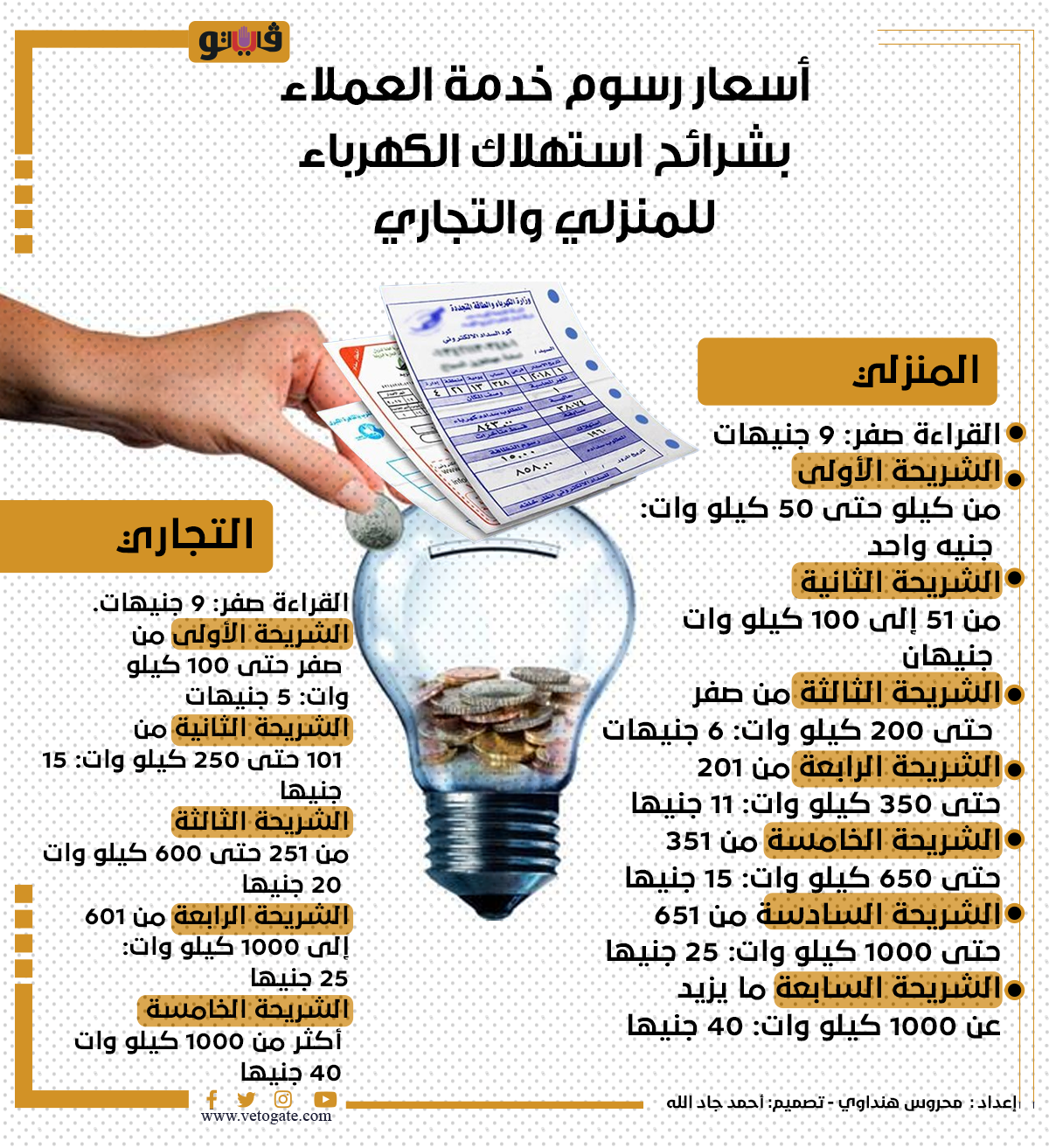 وتنشر فيتو أسعار شرائح الكهرباء للعام الحالي