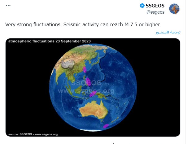 كما كشف معهد رصد النشاط الزلزالي الهولندي عن طريق حركة الكواكب (ٍٍSSGEOS) عن "تقلبات قوية جدًا يمكن أن يصل النشاط الزلزالي إلى 7.5 درجة بمقياس ريختر أو أعلى."