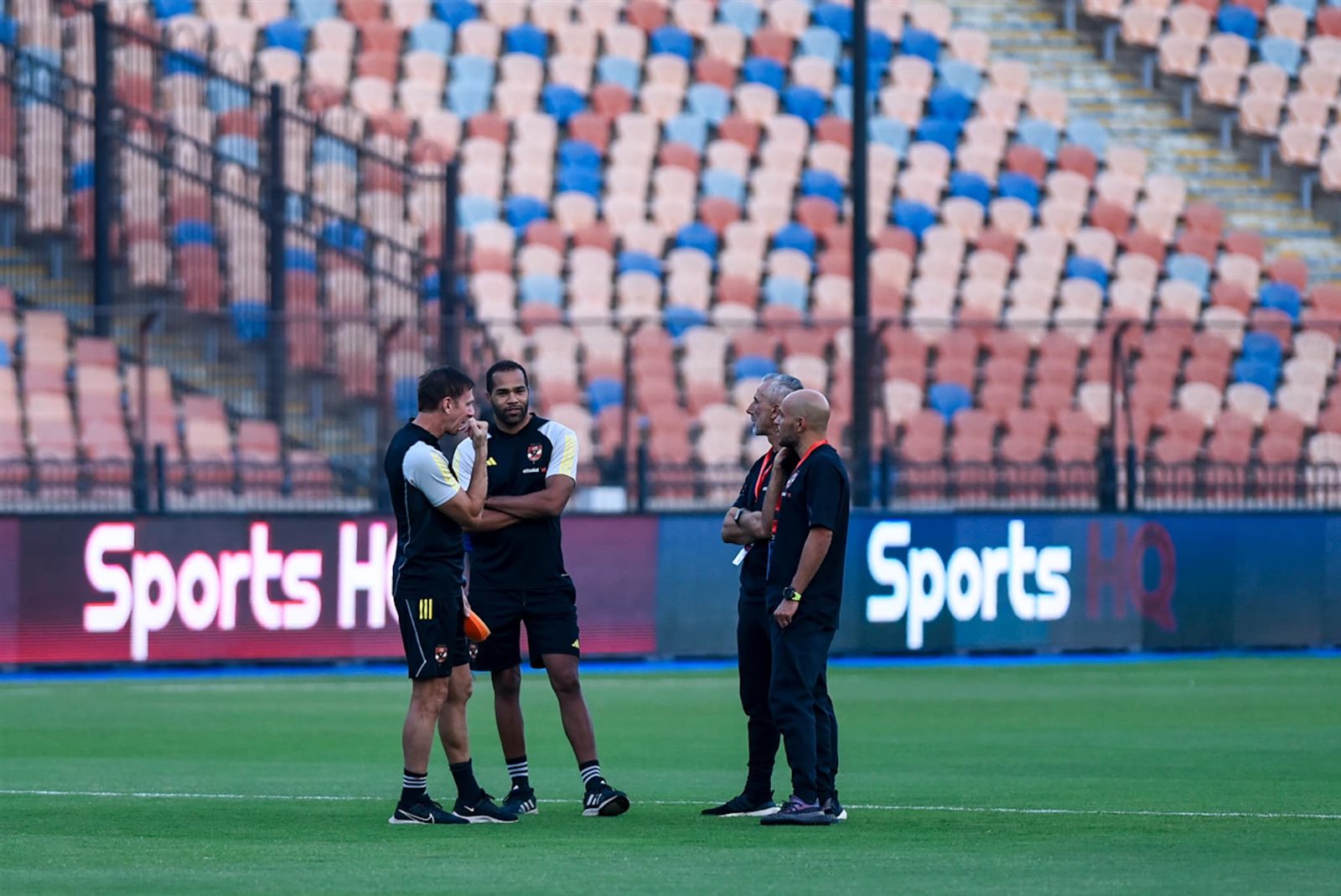 وفور وصول الفريق حرص مارسيل كولر، المدير الفني للفريق الأحمر، والجهاز المعاون، على معاينة أرض الملعب والاطمئنان على كافة الترتيبات قبل انطلاق عمليات الإحماء.