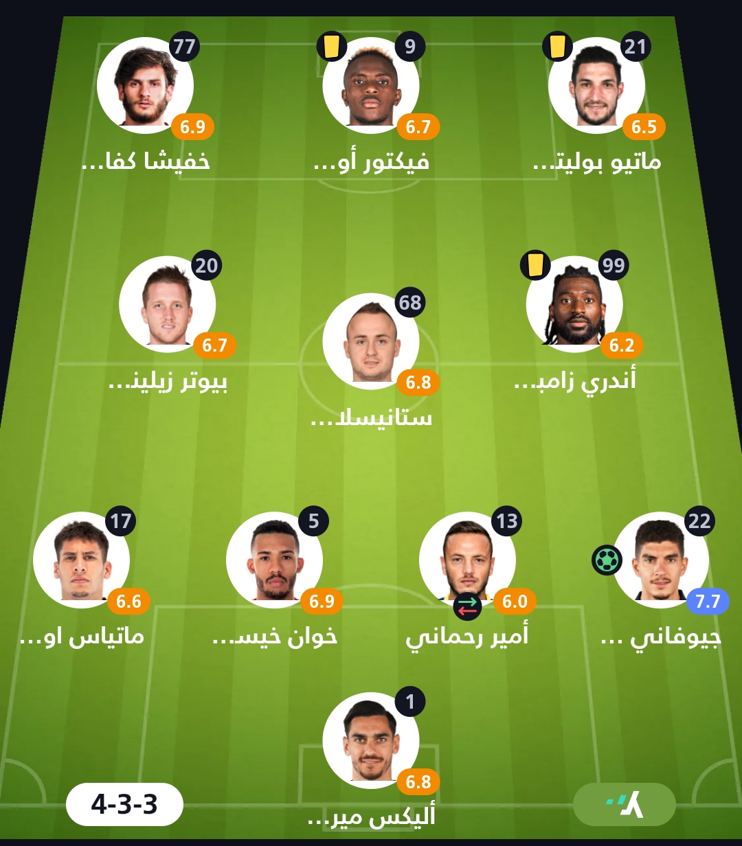 سجل هدفي نابولي، جيوفاني دي لورينزو وسيكو نياكاتي، بينما سجل بروما هدف سبورتنج براجا.