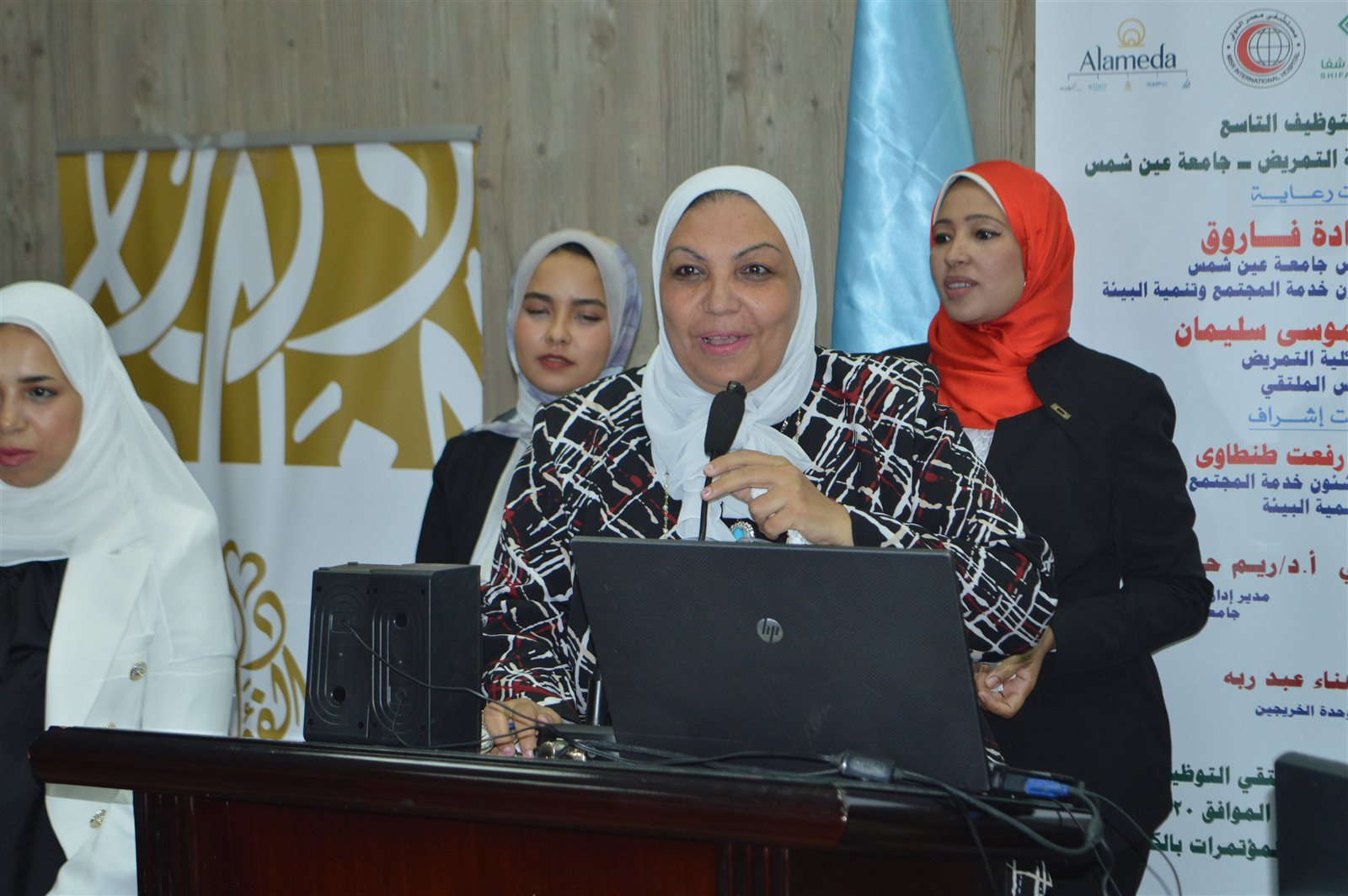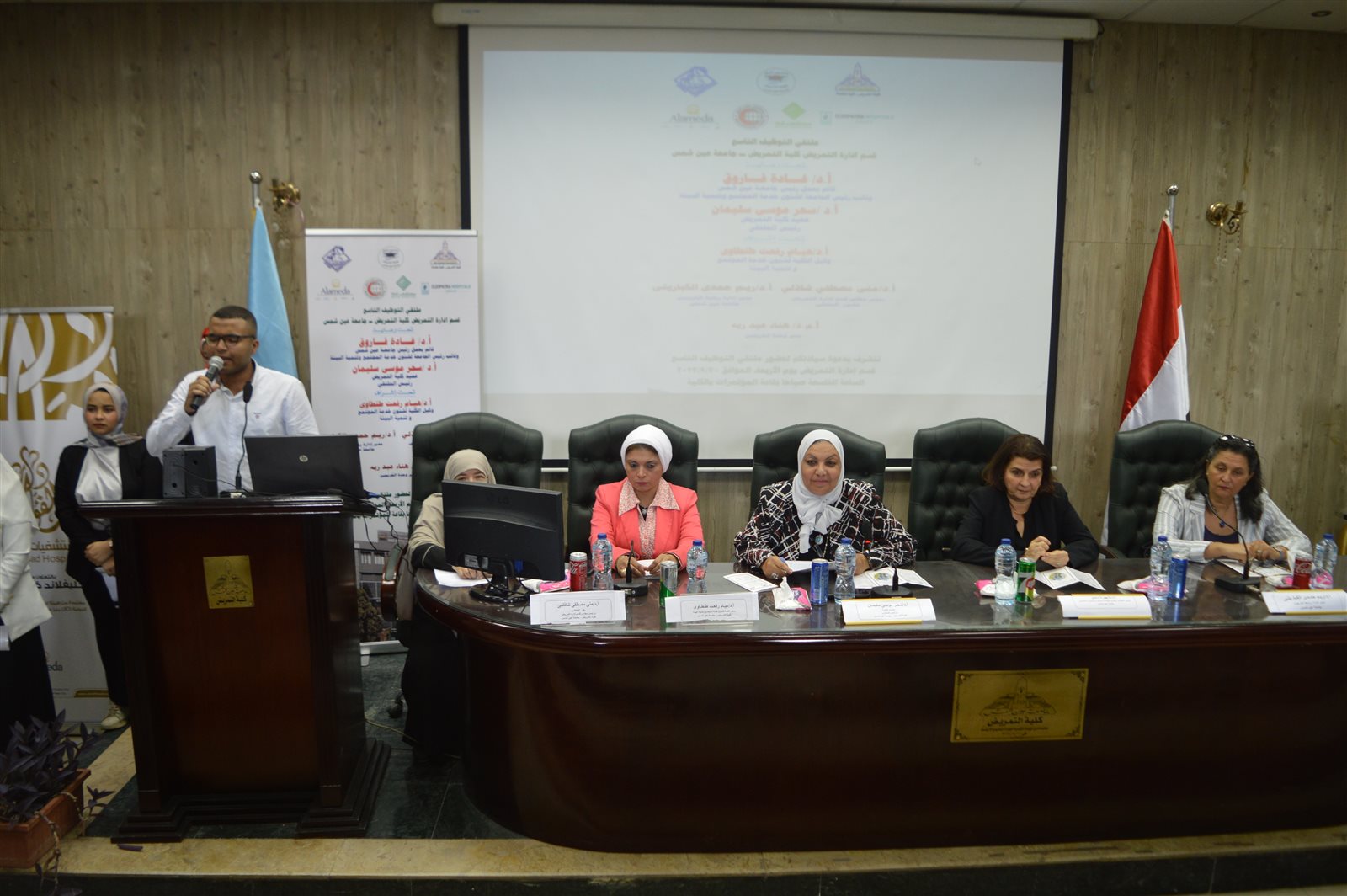 تحت إشراف أ.د. هيام رفعت وكيل الكليه لشؤون خدمه المجتمع وتنميه البيئه، أ.د. منى مصطفى شاذلي رئيس قسم إداره التمريض ومقرر الملتقى،أ.د. ريم الكباريتي مدير اداره روابط الخريجين بالجامعة وأ.م.د. هناء عبد ربه مدير وحدة الخريجين بالكلية، بحضور أ.د. شهيرة سمير المدير التنفيذي لقطاع العلاقات الدولية والتعاون الأكاديمي بالجامعة ووكلاء الكلية ولفيف من أعضاء هيئة التدريس والهيئة المعاونة وخريجى الكلية وممثلى من المستشفيات المشاركه كمستشفيات جامعة عين شمس ومستشفى كليوباترا وشفا ومصر الدولى ووادى النيل والعربى وامانه المراكز الطبية المتخصصة ومستشفى alameda.