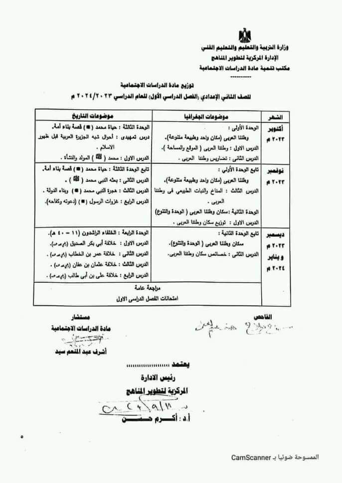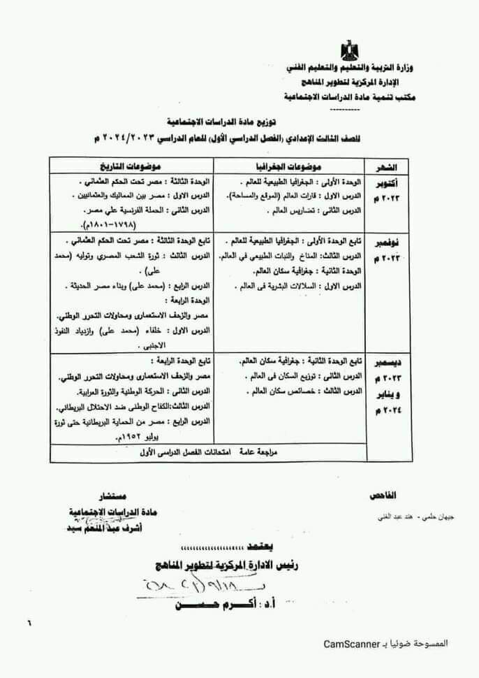 توزيع منهج الدراسات الاجتماعية لجميع المراحل الدراسية لعام 2023 / 2024