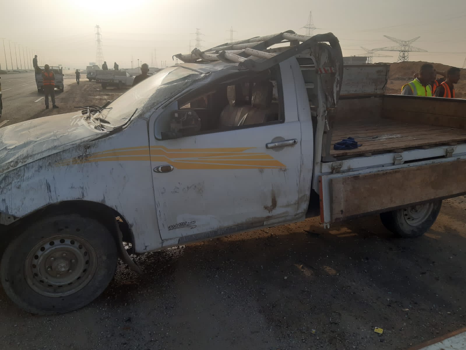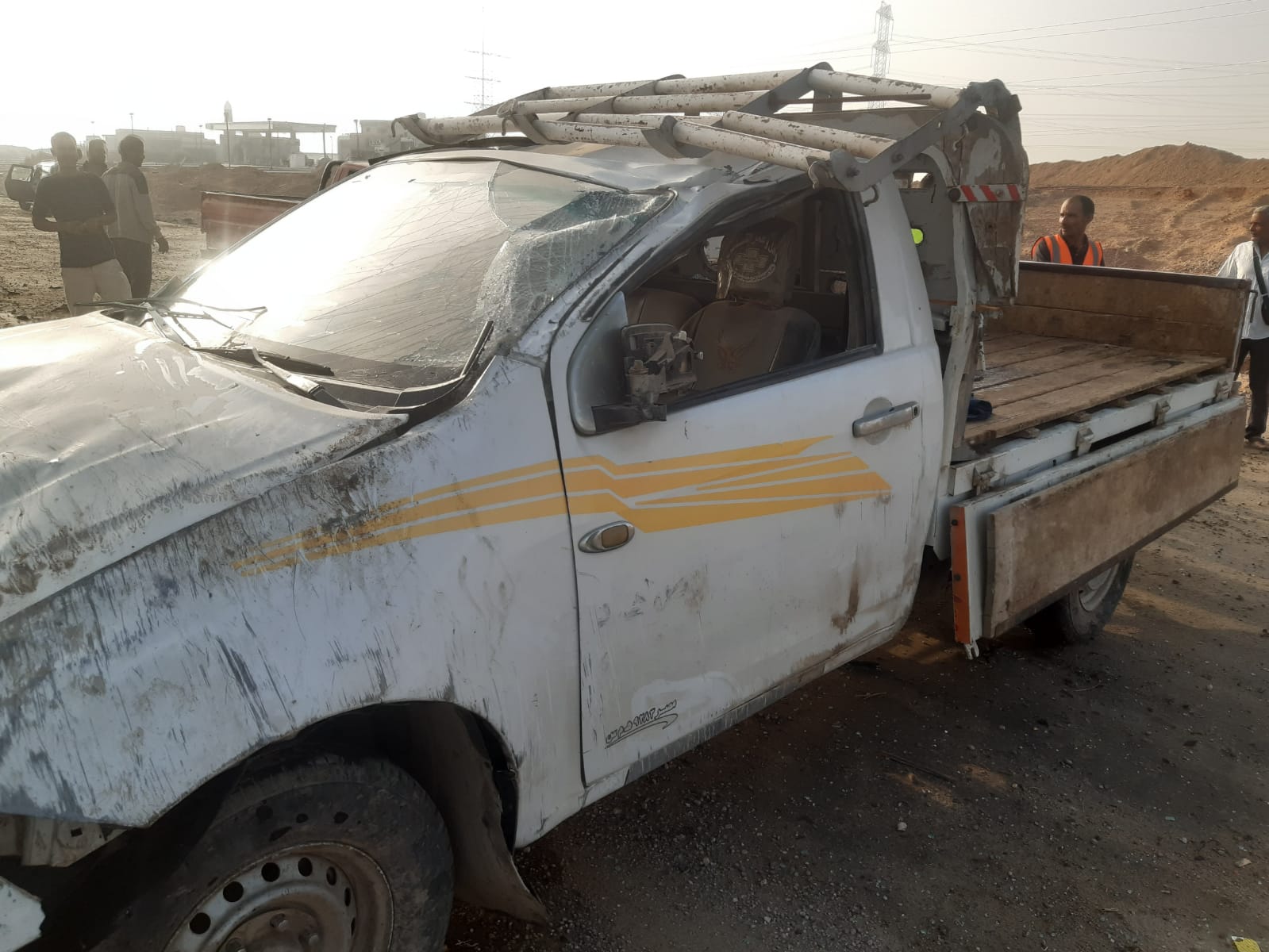 لقي عامل مصرعه بينما أصيب ١١ شخصا بجروح وسحجات وكسور في انقلاب سيارة ربع نقل محملة بالعمال بطريق السويس القاهرة الجديدة.