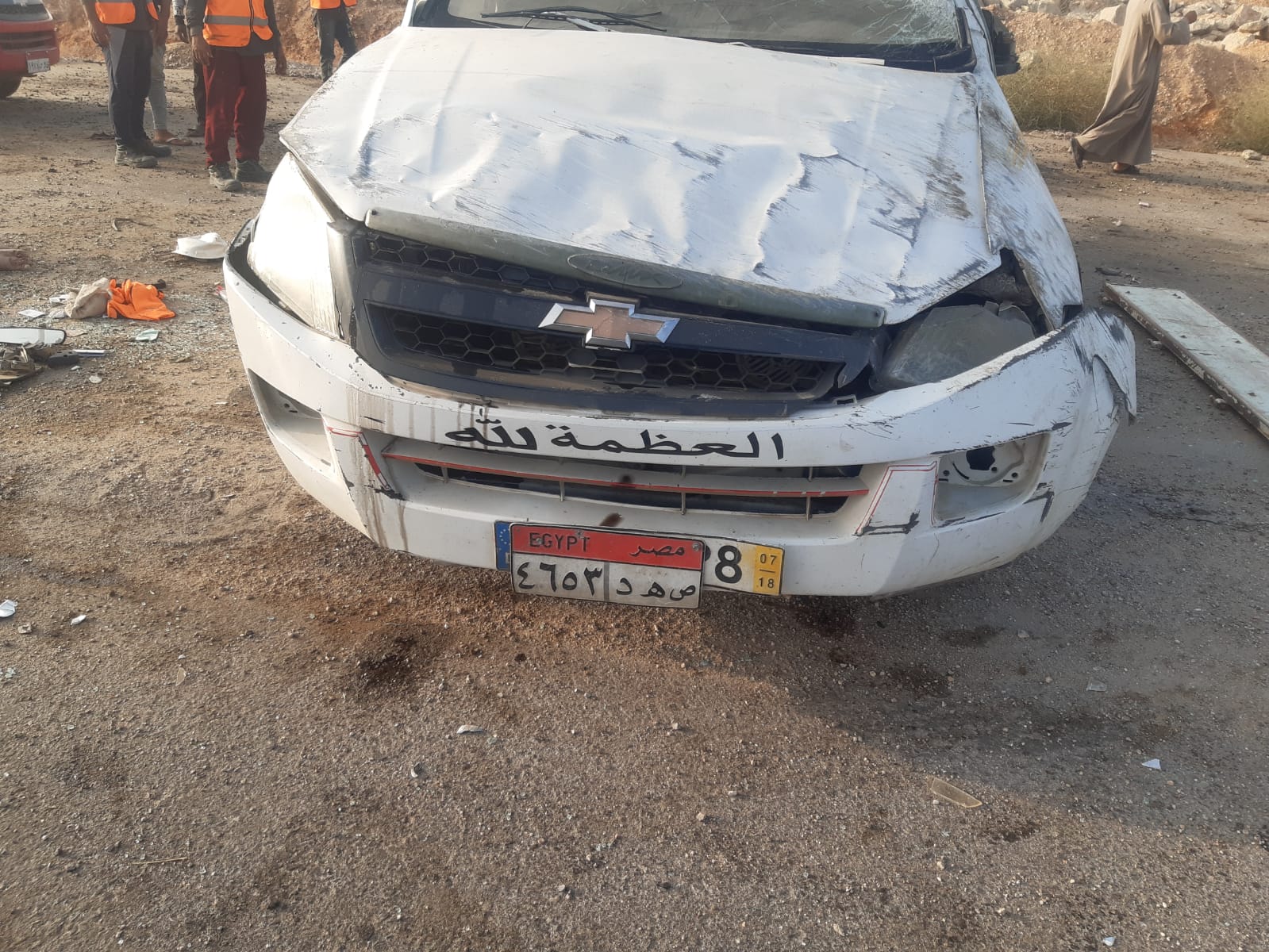مصرع عامل وإصابة 11 آخرين في انقلاب سيارة ربع نقل بطريق السويس (صور)