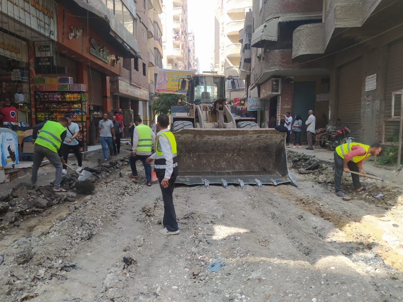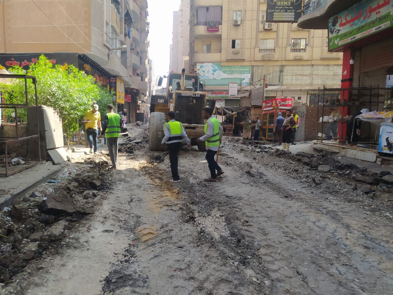 بدء أعمال رصف وتطوير الطريق الأبيض بحى العجوزة بطول 1200م (صور)