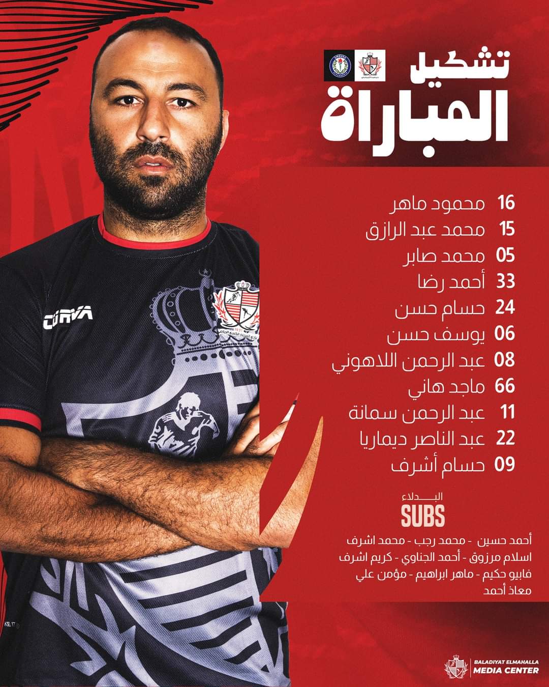 وضمت قائمة سموحة لمواجهة بلدية المحلة 22 لاعبا جاءت كالتالى..