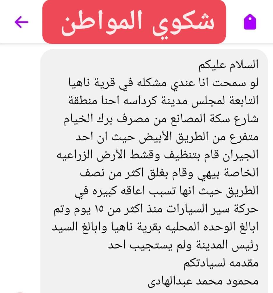 تلقت الصفحة الرسمية لمحافظة الجيزة شكوي مواطن بشارع سكه المصانع ببرك الخيام بقرية ناهيا التابعه لمركز ومدينة كرداسة من قيام مخالف بقشط الأرض الزراعية وإلقاء المخلفات بالطريق العام وإعاقة الحركة المرورية.
