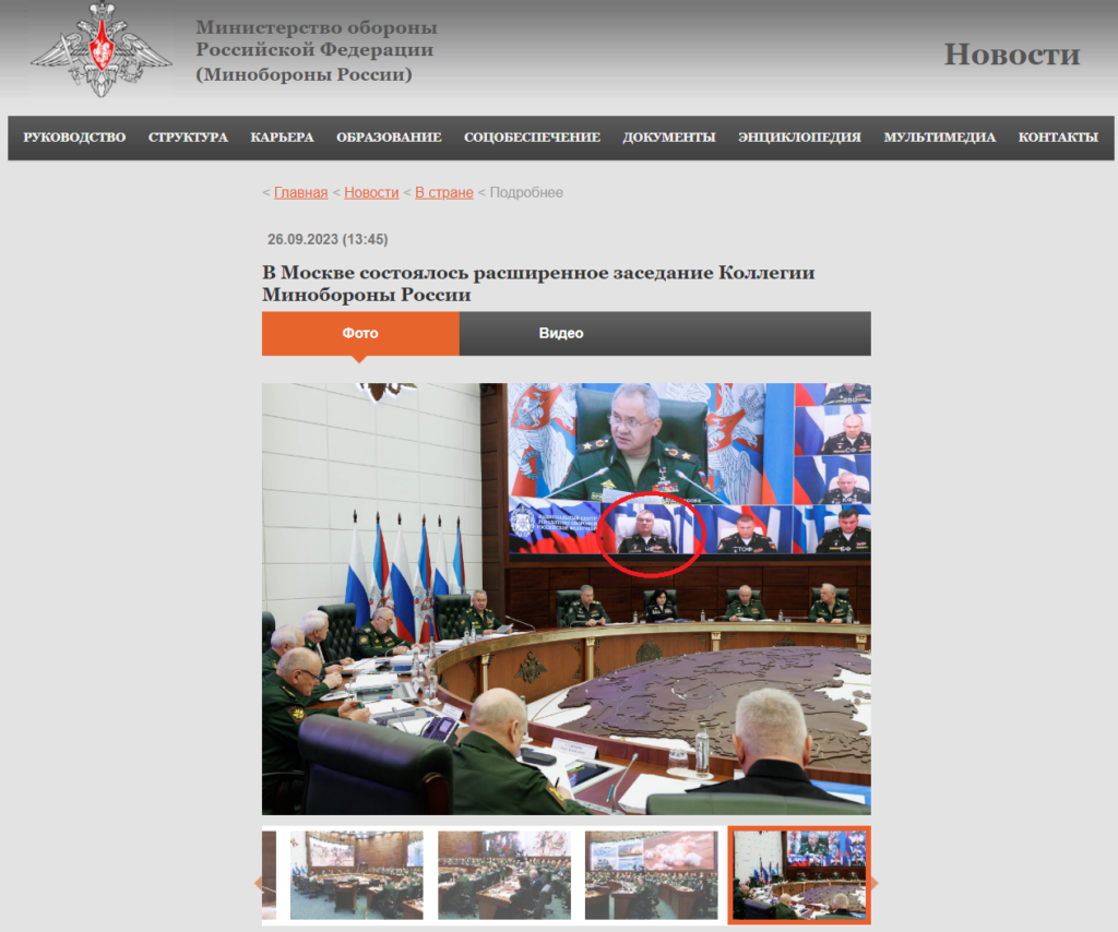 وظهر سوكولوف، في رابط الفيديو بزيّ عسكري على شاشة كبيرة إلى جانب مسؤولين عسكريين كبار آخرين خلال مشاركتهم في اجتماع عبر الفيديو ترأسه وزير الدفاع الروسي، سيرغي شويغو.