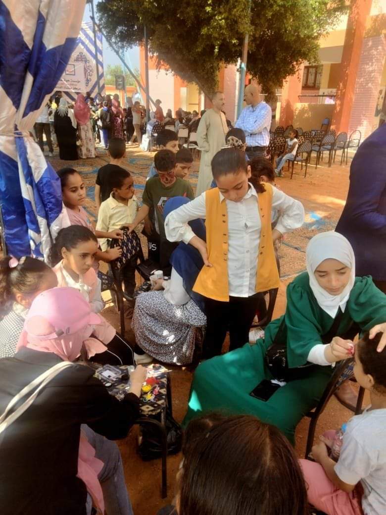 وأشارت هند عبد الحليم إلى أن الفعالية التي تم تنظيمها ضمت برنامجا ترفيهيا وإجراء مسابقات وأنشطة فنية ورياضية بين طلاب المدارس بالقرية، وتوزيع أدوات ومستلزمات مدرسية اللازمة للعام الدراسي الجديد.