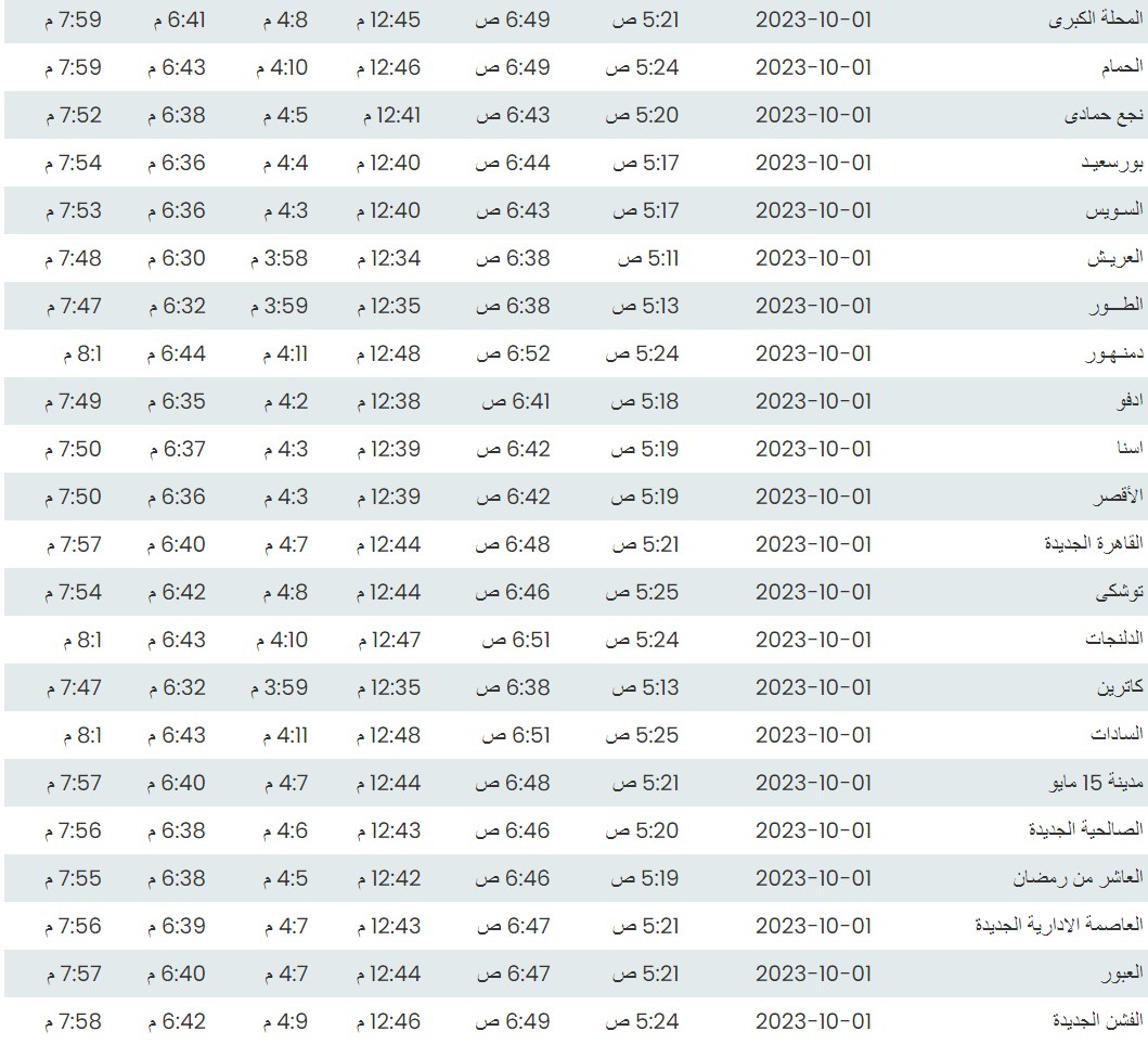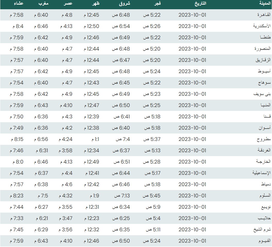 مواقيت الصلاة اليوم بتوقيت القاهرة