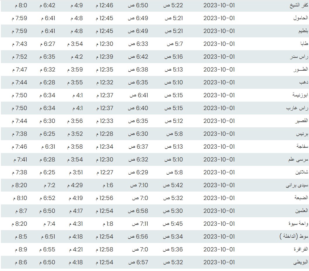 مواقيت الصلاة اليوم بتوقيت الإسكندرية