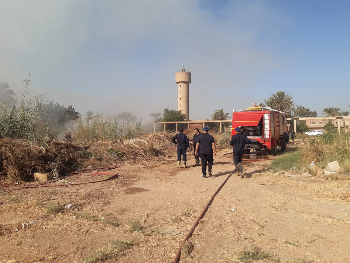 إخماد حريق بمخلفات نباتية خلف مصنع للنسيج في بني سويف