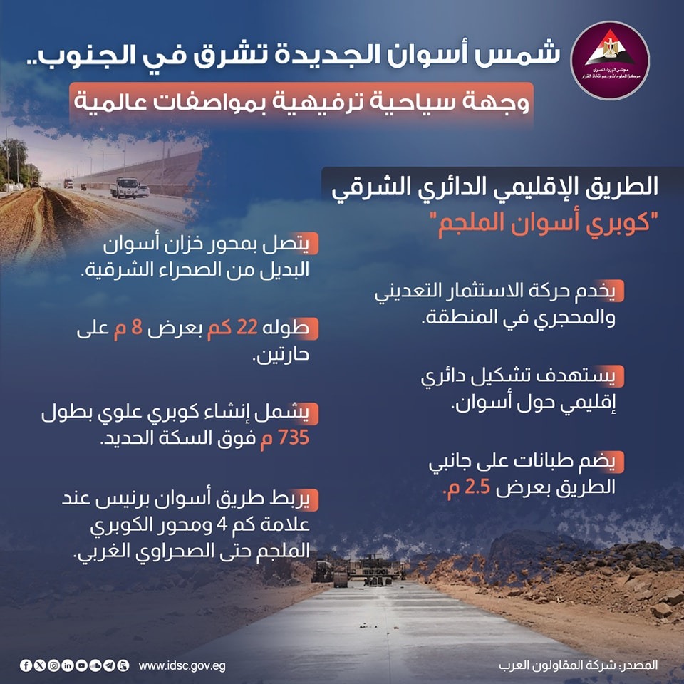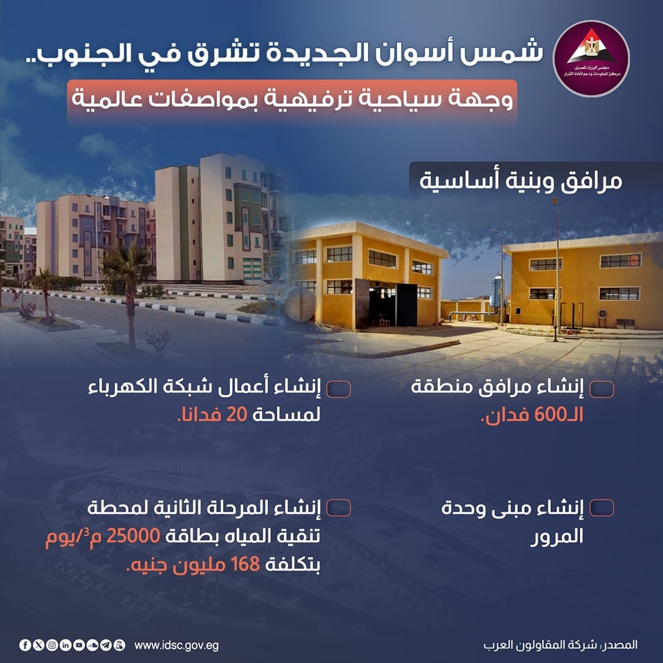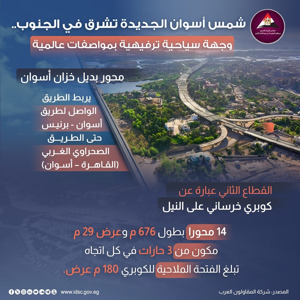 وأضاف محافظ أسوان، أن المحافظة أولت اهتمامًا بالغًا بدعم تقديم الخدمات للمواطنين، فقامت بتطوير السوق السياحي وعدد من الميادين والمرافق العامة؛ كميدان "درة النيل وميدان المحطة وحديقة السلام، بجانب تنفيذ ممشى "أهل مصر" السياحي على كورنيش النيل بطول 13 كيلومترًا، فضلًا عن تنفيذ العديد من المشروعات التنموية في المحافظة؛ مثل: المشروع القومي "حياة كريمة" وبرامج التأمين الصحي الشامل والتحول الرقمي.