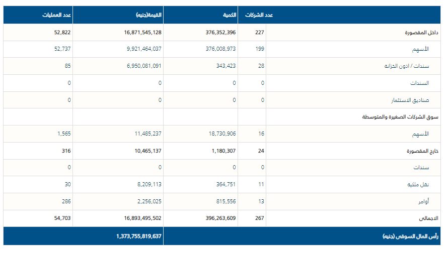 وتراجع مؤشر الشركات الصغيرة والمتوسطة "إيجي إكس 70 متساوي الأوزان" بنسبة 0.19%عند مستوى 3788 نقطة.