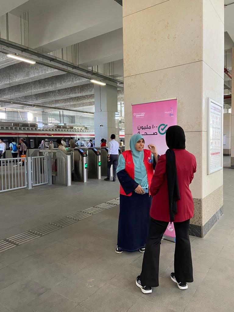 بموجب هذا التعاون يتواجد عدد من الأطباء والمتخصصين خلال الفترة من 24 إلى 30 سبتمبر ومن 17 أكتوبر إلى 31 أكتوبر 2023، وذلك في محطات العباسية وكلية البنات من الخط الأخضر الثالث ومحطة مدينة الفنون والثقافة بقطار العاصمة والمحطة التبادلية عدلي منصور.