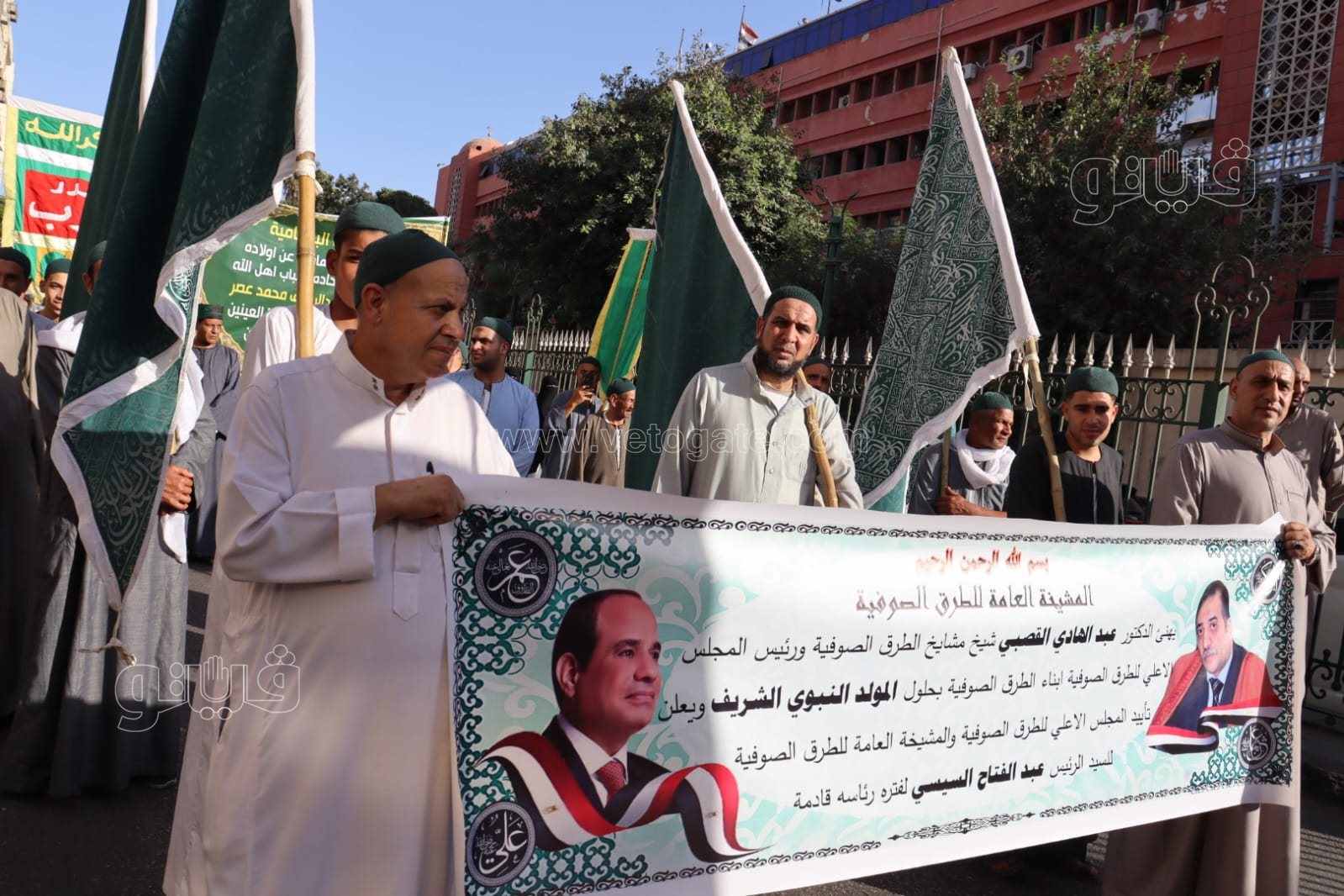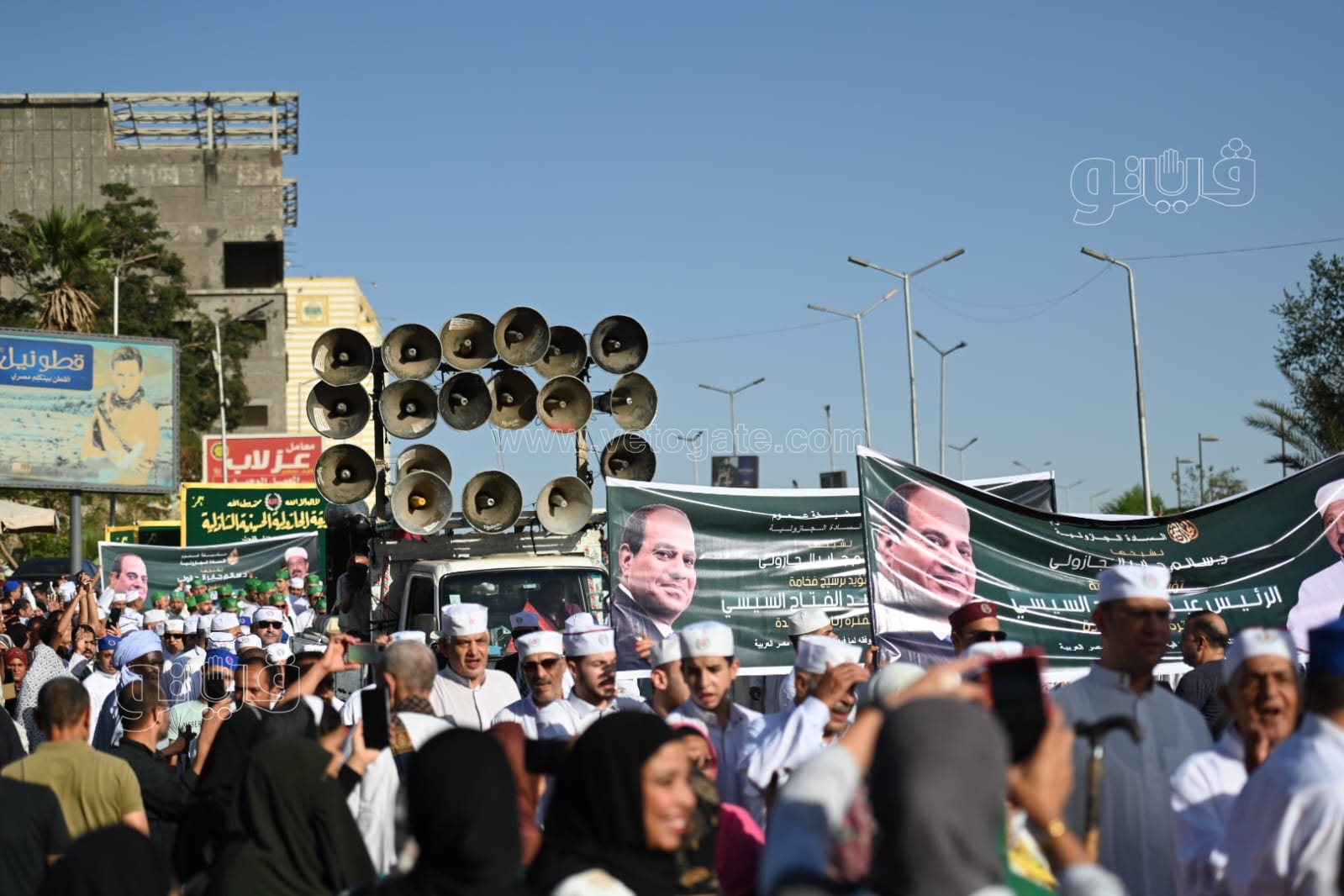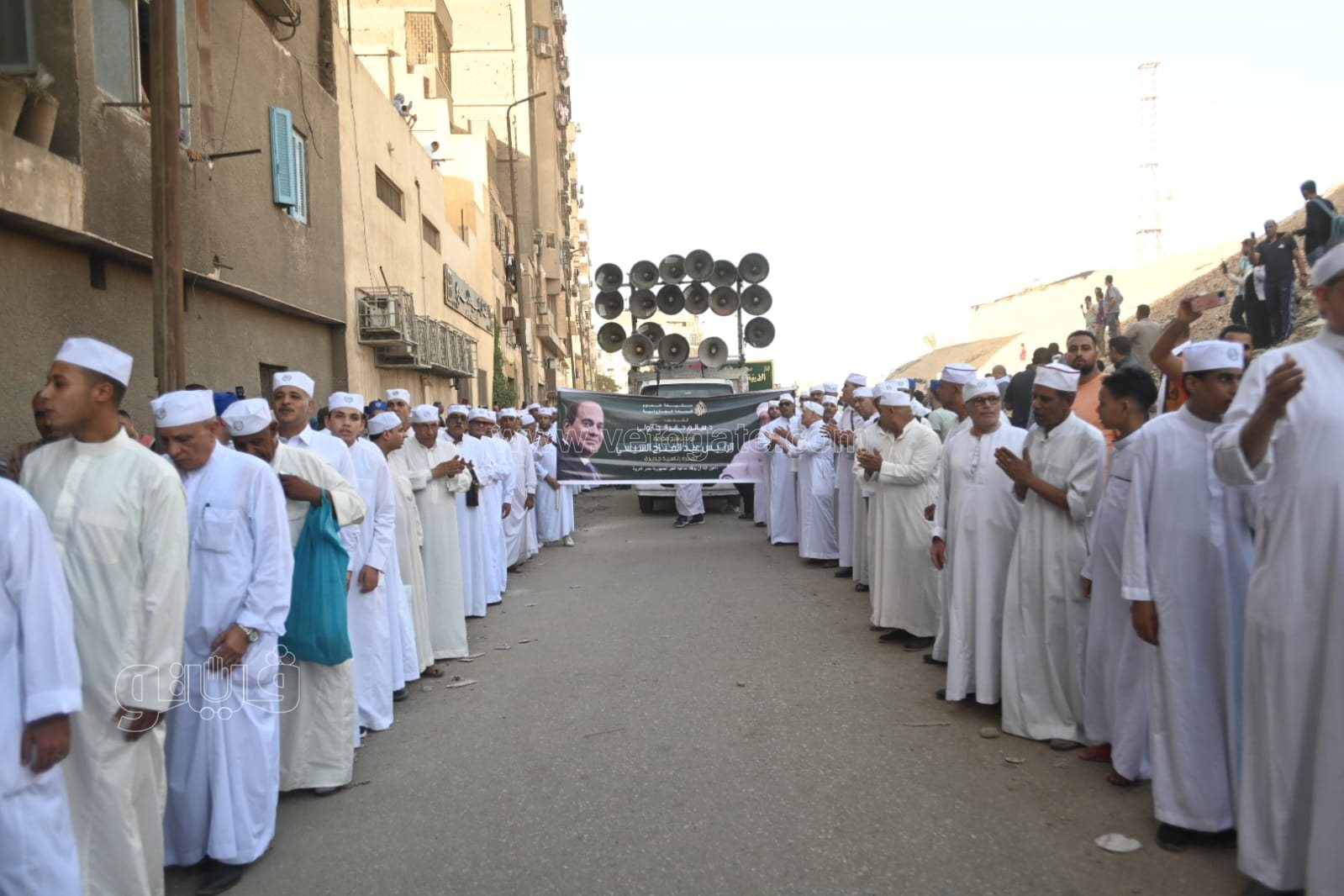 بعد غياب 3 سنوات..عودة الطبول والإعلام الخضراء لاحتفالات مشايخ الطرق الصوفية بالمولد النبوي.. ولافتات لتأييد السيسى (فيديو)