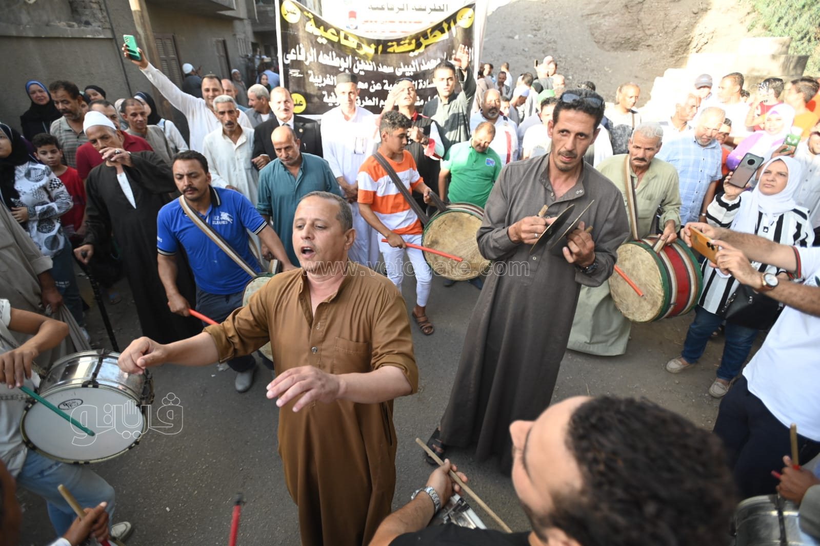 وعلي وقع دقات الطبول الضخمة والأناشيد ووسط الجلابيب والرايات الخضراء والتي انعكس عليها بعض خيوط الشمس بدت وكأنها قد طهرت من كل دنس عادت مظاهر احتفالات الصوفية.
