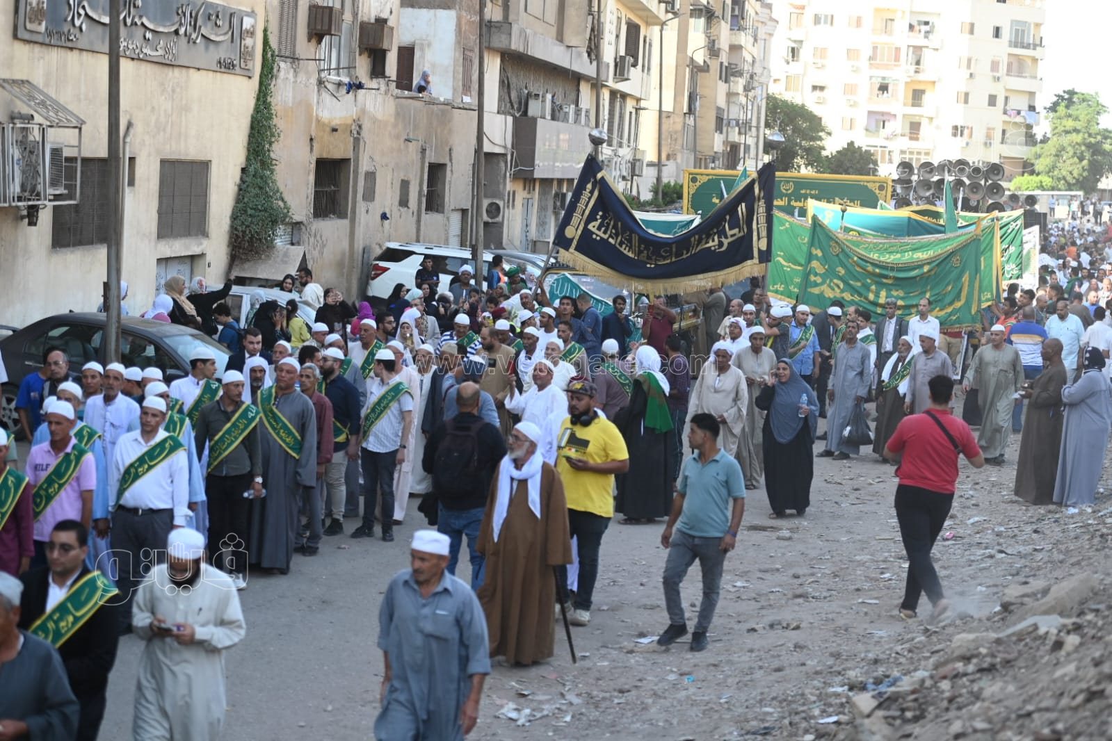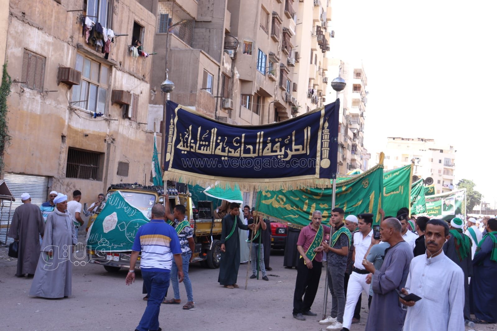 اجتازت المواكب شديدة التنظيم فوضي الشارع حيث التقت جميعًا بداخل مسجد الحسين بادئة أشد الاحتفالات لديها قداسة مولد النبي صلى الله عليه وسلم.