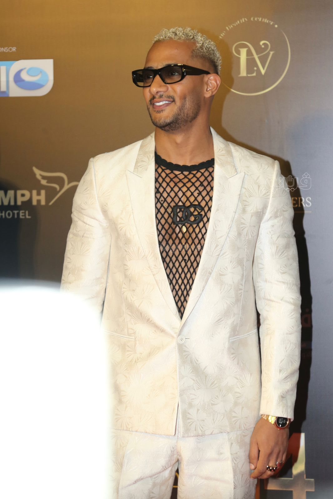 مهرجان الفضائيات العربية، خطف الفنان محمد رمضان الأنظار فور وصوله إلى مهرجان الفضائيات العربية العربية في دورته الـ14 وارتدى محمد رمضان بدلة بيضاء وتحتها تيشرت شفاف وظهر بشعر باللون الأصفر.