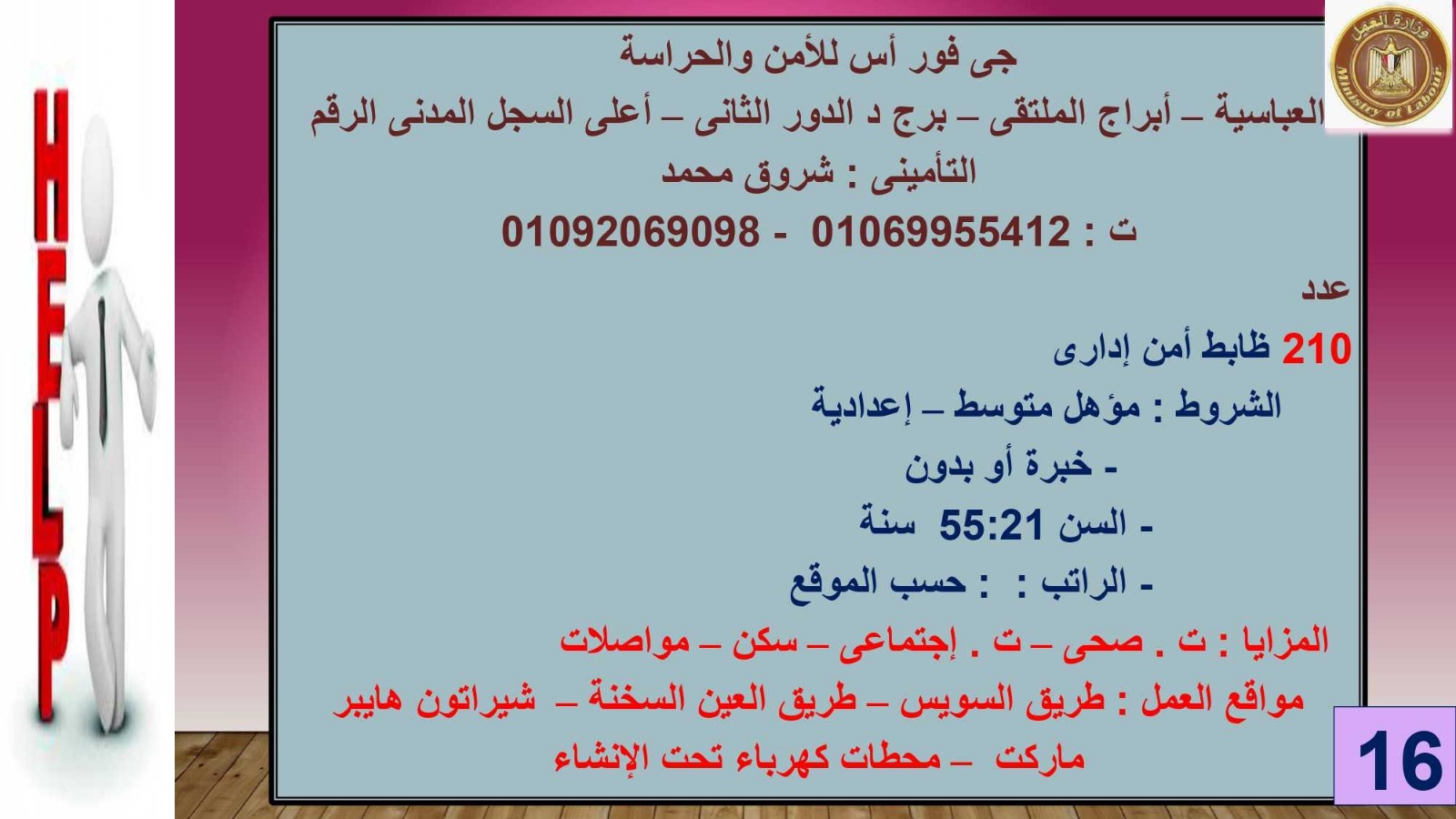 وتعلن وزارة العمل عن وظائف من خلال مكاتب العمل التابعة لمديريات العمل بالمحافظات ومن خلال نشرة التوظيف والتي تصدرها الوزارة مرة في الشهر.